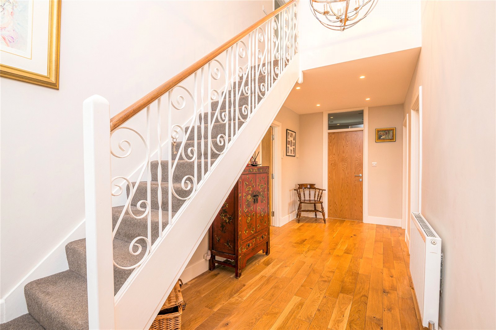 This bright and spacious reception hall is approached via a solid oak front door and double glazed window. Turning staircase to first floor. Solid oak wood flooring. Recess ceiling lighting. Radiator. Doors to accommodation.