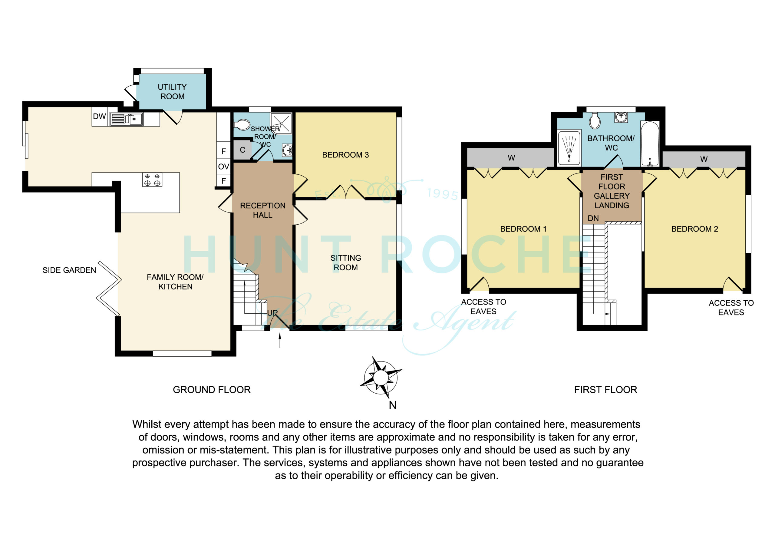 Fitted with a modern luxury white suite comprising quadrant corner shower cubicle. Vanity unit with wash basin, mixer tap and cupboard below. Low flush W.C. Built in cloaks cupboard. Radiator. Tiled floor. Coved ceiling with recessed lighting. Double glazed window to side.