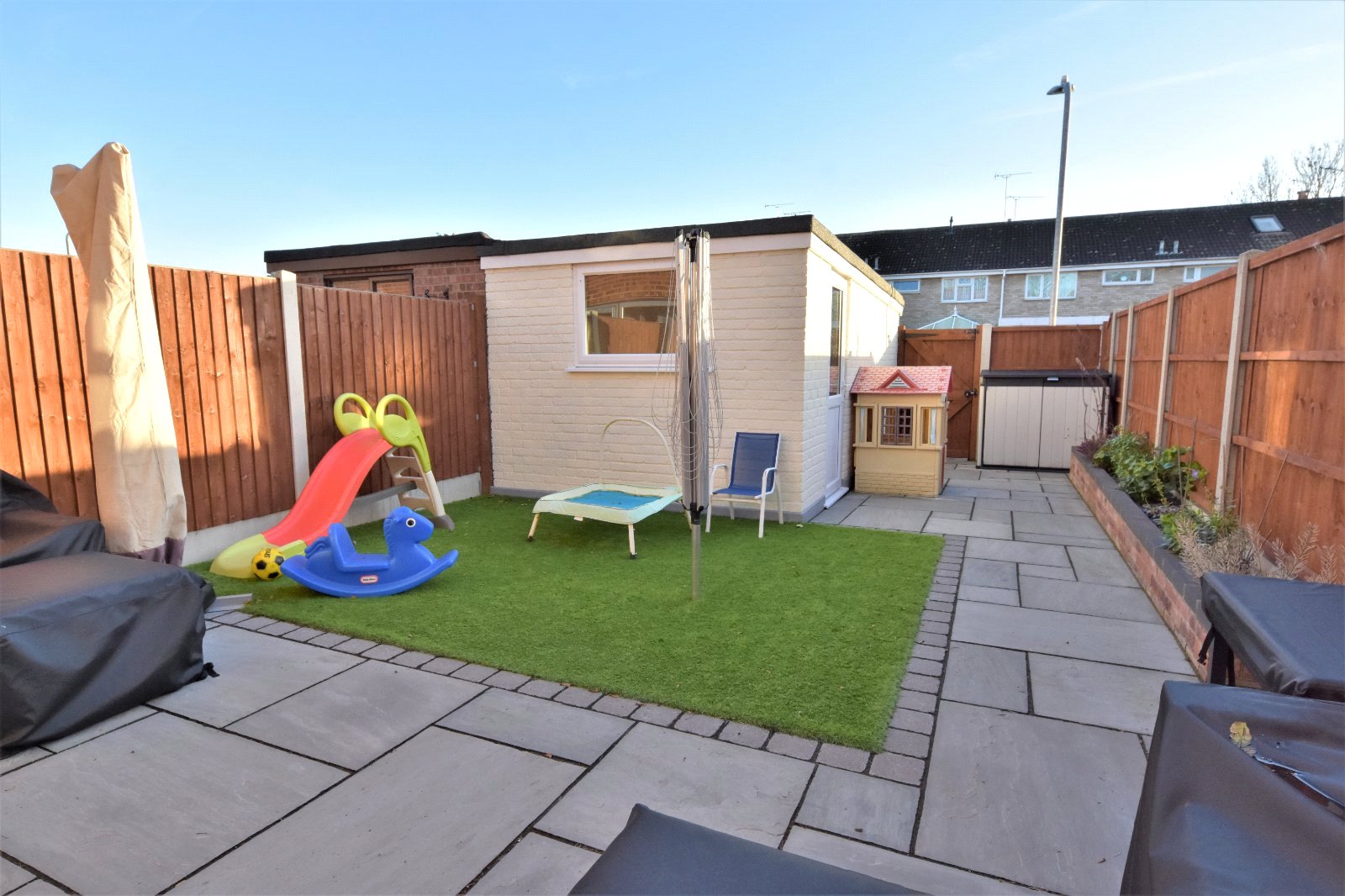 The SOUTH FACING rear Garden is approached via the Kitchen/Diner and commences with an attractive paved seating area with extends to the rear of the garden with remaining section having been laid with high quality artificial lawn. Fencing to boundaries. Gated rear access.