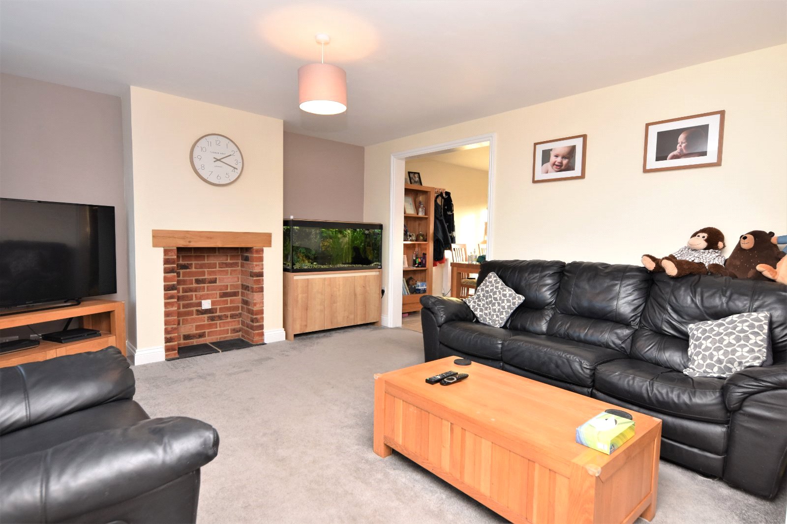 uPVC double glazed window to front aspect. Stairs rising to first floor accommodation with spindle balustrade. Half height door to under stairs storage space. Feature exposed brick chimney recess niche. Radiator. Smooth plastered ceiling. Double width square arch to;