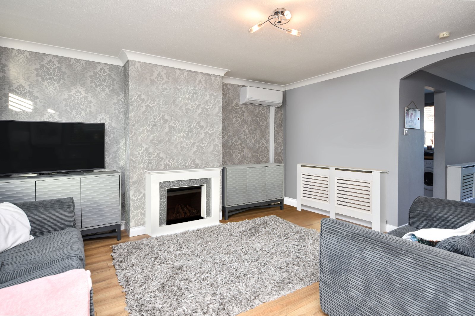 uPVC double glazed window to front aspect. Further uPVC double glazed window to side aspect. Feature fireplace decorative surround. Two radiators. Laminate wood effect flooring. Stairs rising to first floor with spindle balustrade. Semi open plan to Dining area. Wall mounted 'Midea' air conditioning unit. Coving to textured ceiling.