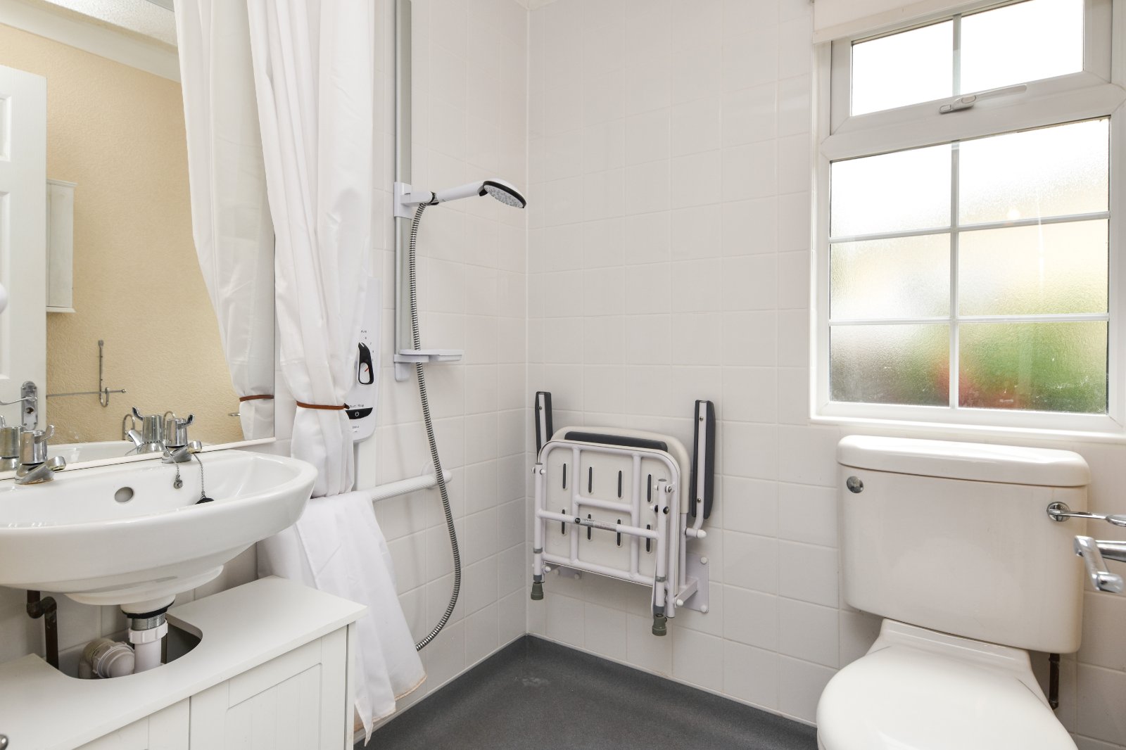 Obscure Georgian style double glazed window to side aspect. Radiator. The shower room is designed as a wet room style with integrated shower unit, dual flush WC and pedestal wash hand basin. Partly tiled walls. Shaving point. Coving to textured ceiling.