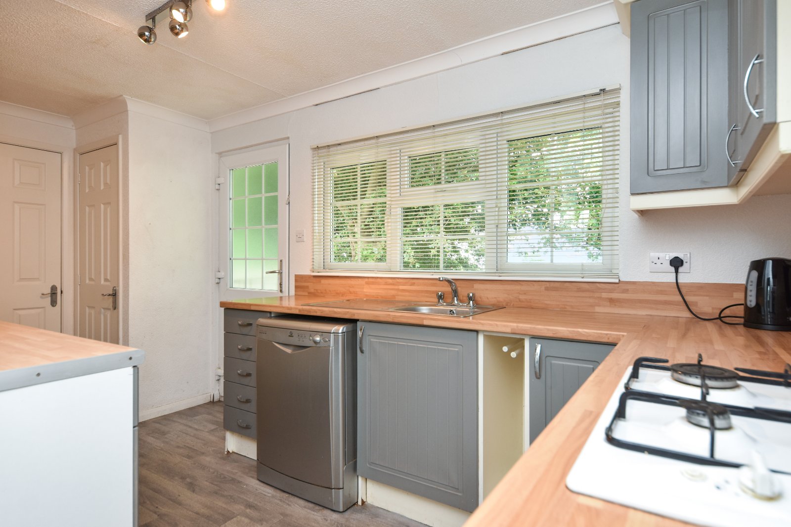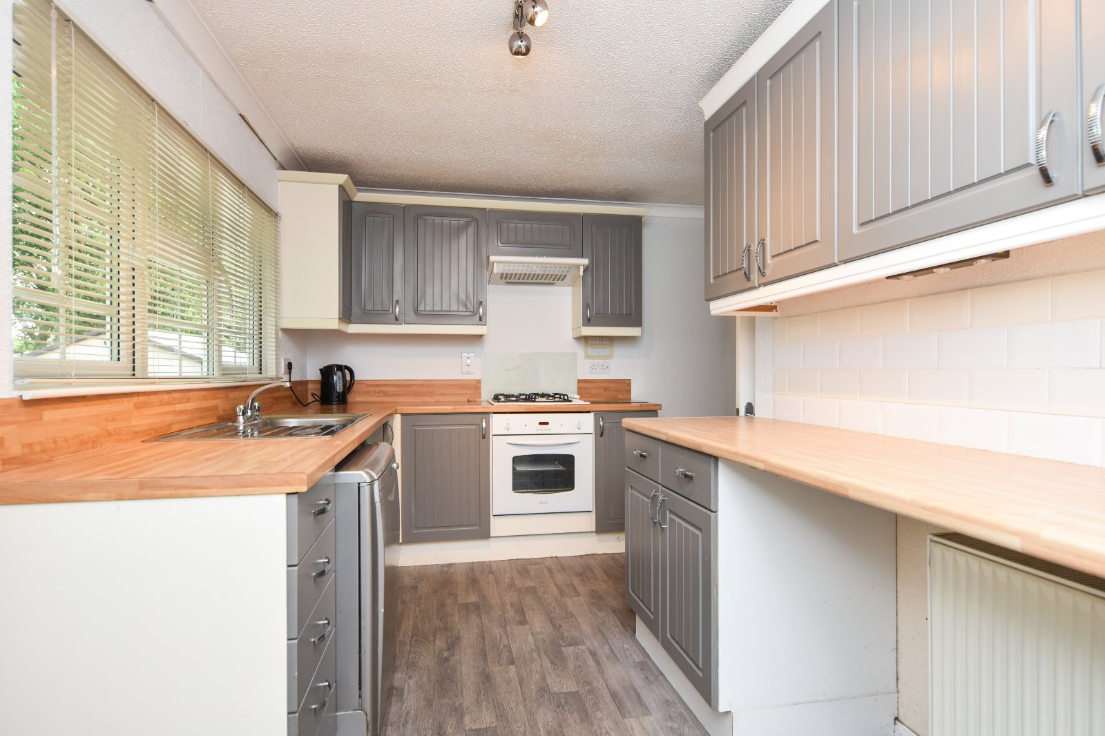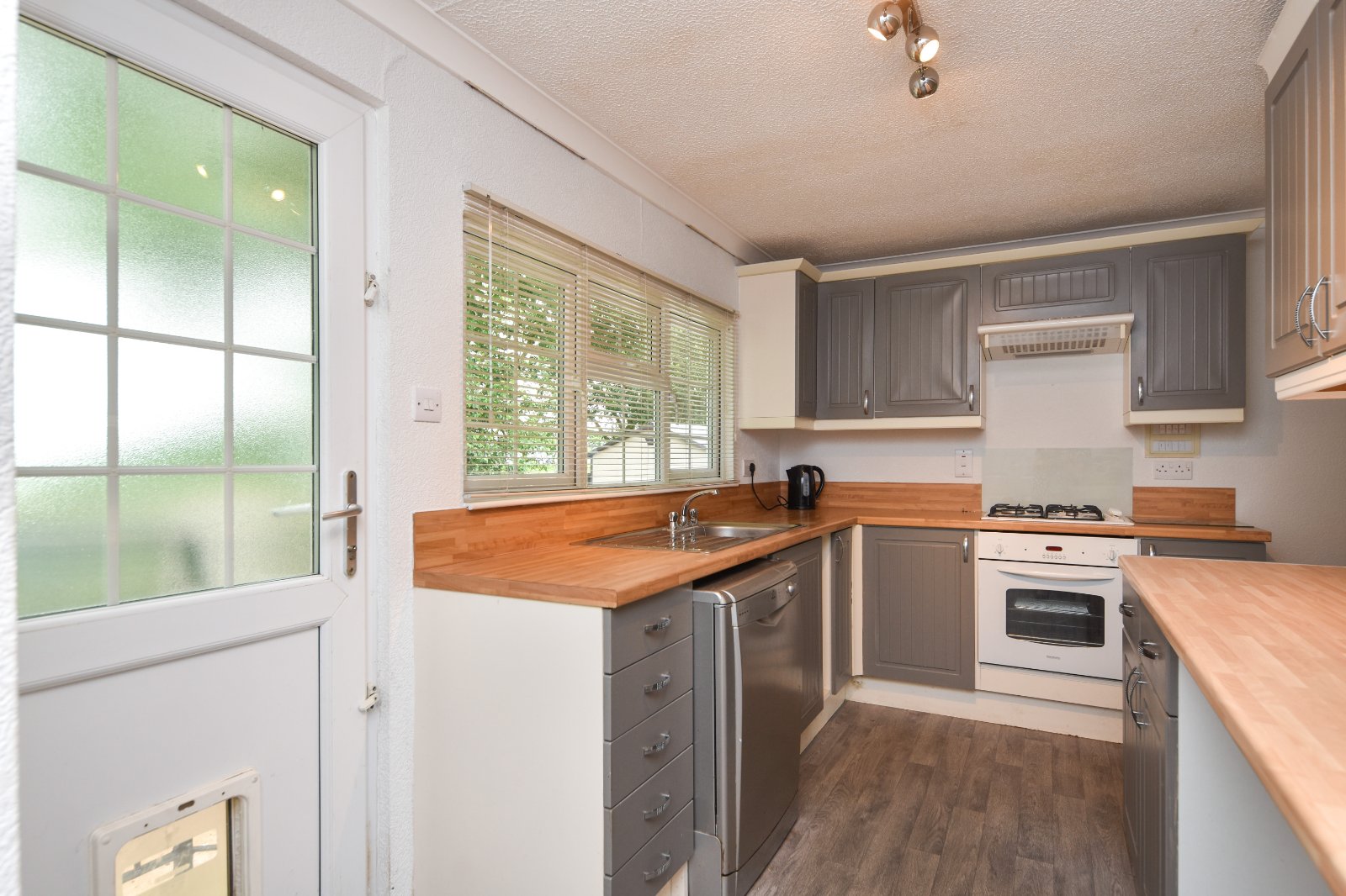 Georgian style double glazed window to rear aspect with far reaching sea glimpses. uPVC obscure Georgian style double glazed door leading to Garden area. Panelled door to built in cupboard housing wall mounted 'Heatline Capriz' boiler. Further panelled door to cupboard with linen shelving. The Kitchen is fitted with an attractive range of eye and base level units with wood effect working surfaces over inset with stainless steel single drainer sink unit with mixer tap over. Under counter dishwasher (to remain). Breakfast bar seating area with wall mounted cabinets over. Under counter recess for appliances. Radiator. Coving to textured ceiling.