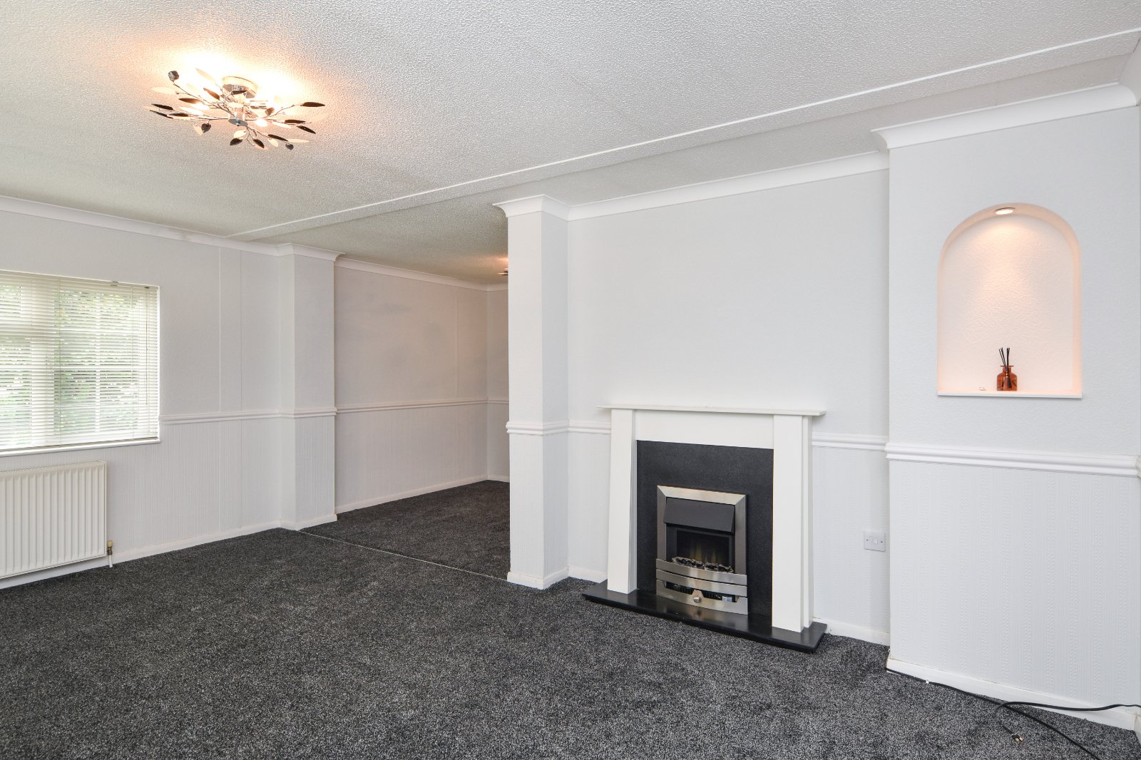 Attractive large Georgian style double glazed bay window to front aspect. Further uPVC double glazed window to side aspect. Dado rail. Two radiators. Feature arched recess shelving niche inset with lighting. Feature fireplace with mantle surround. Coving to textured ceiling. Open plan to;