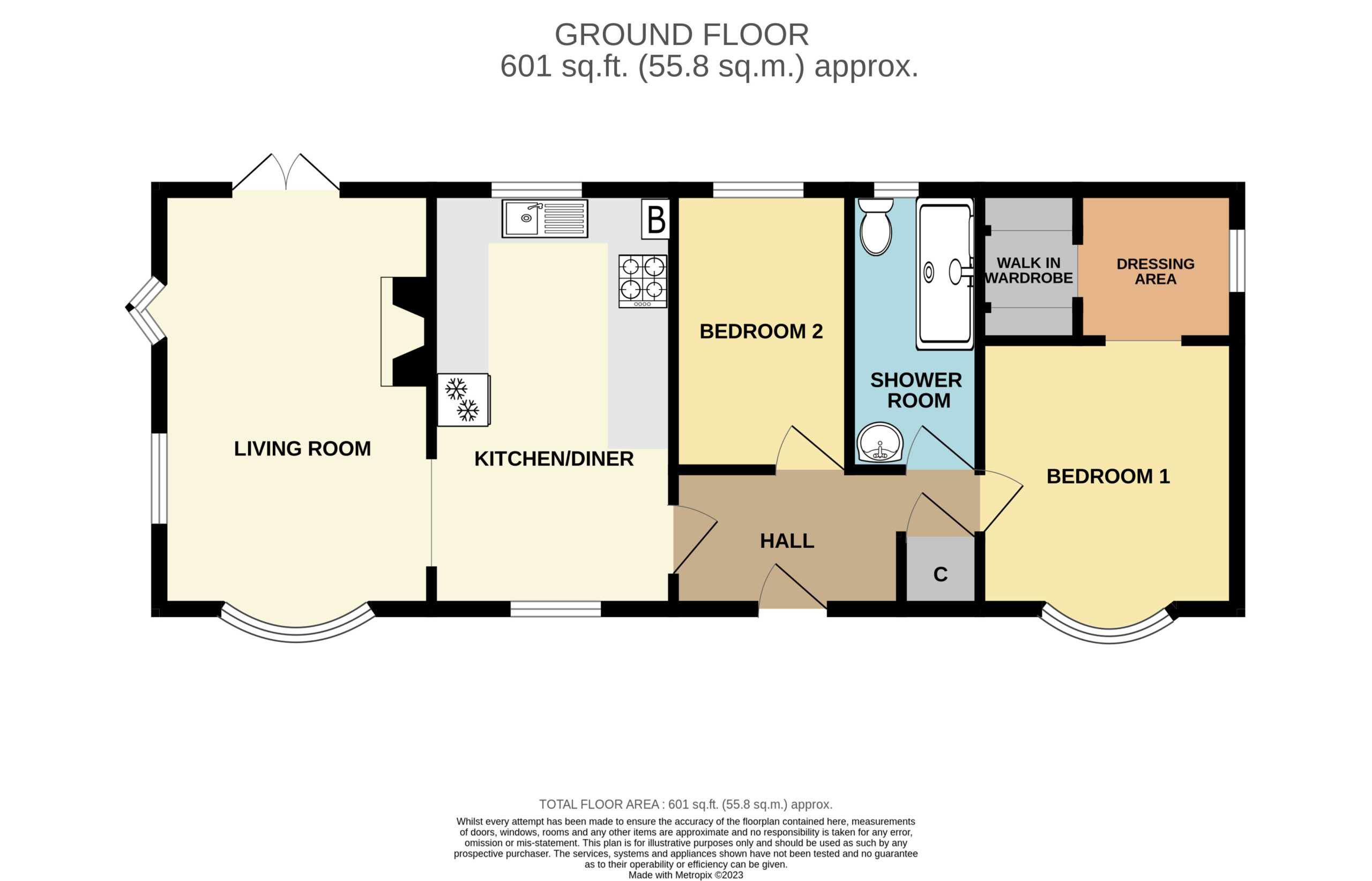 Panelled doors off to Living area, Bedrooms and Shower Room. Further panelled door to build in cloaks cupboard.