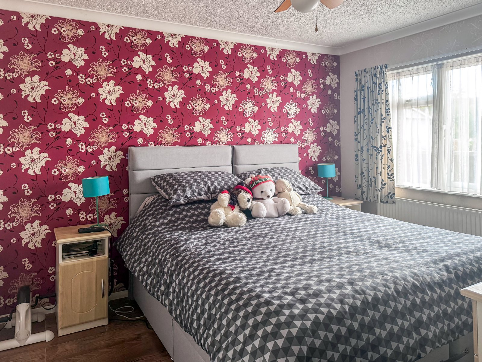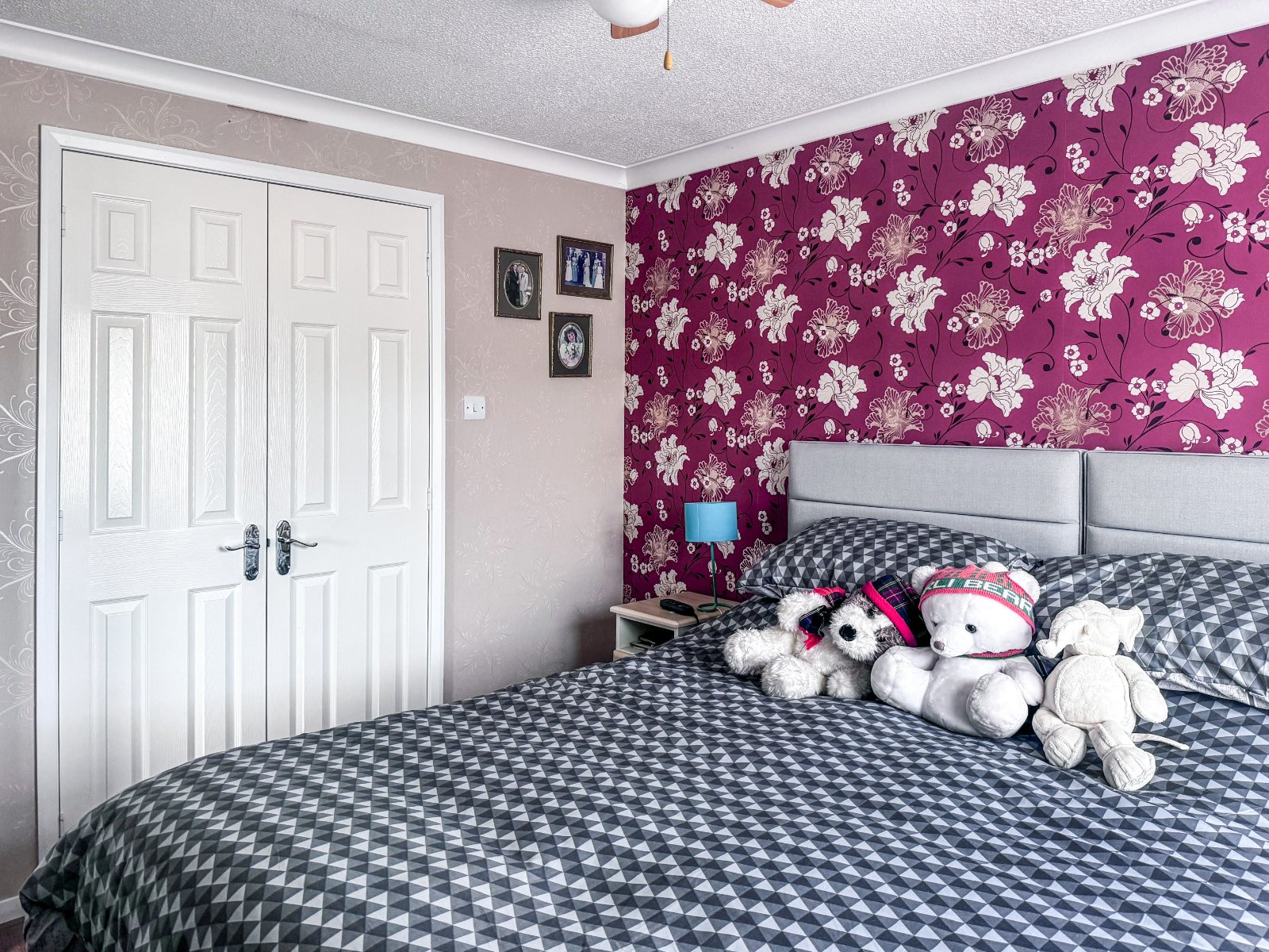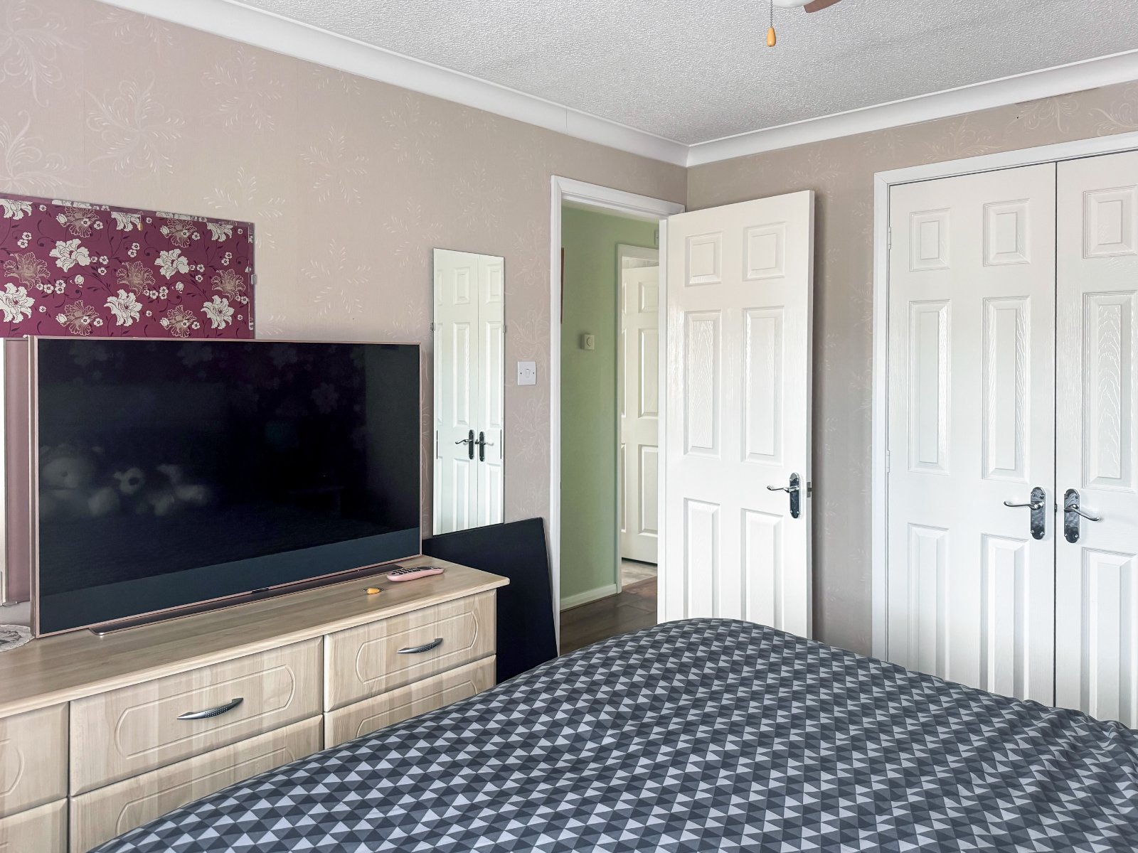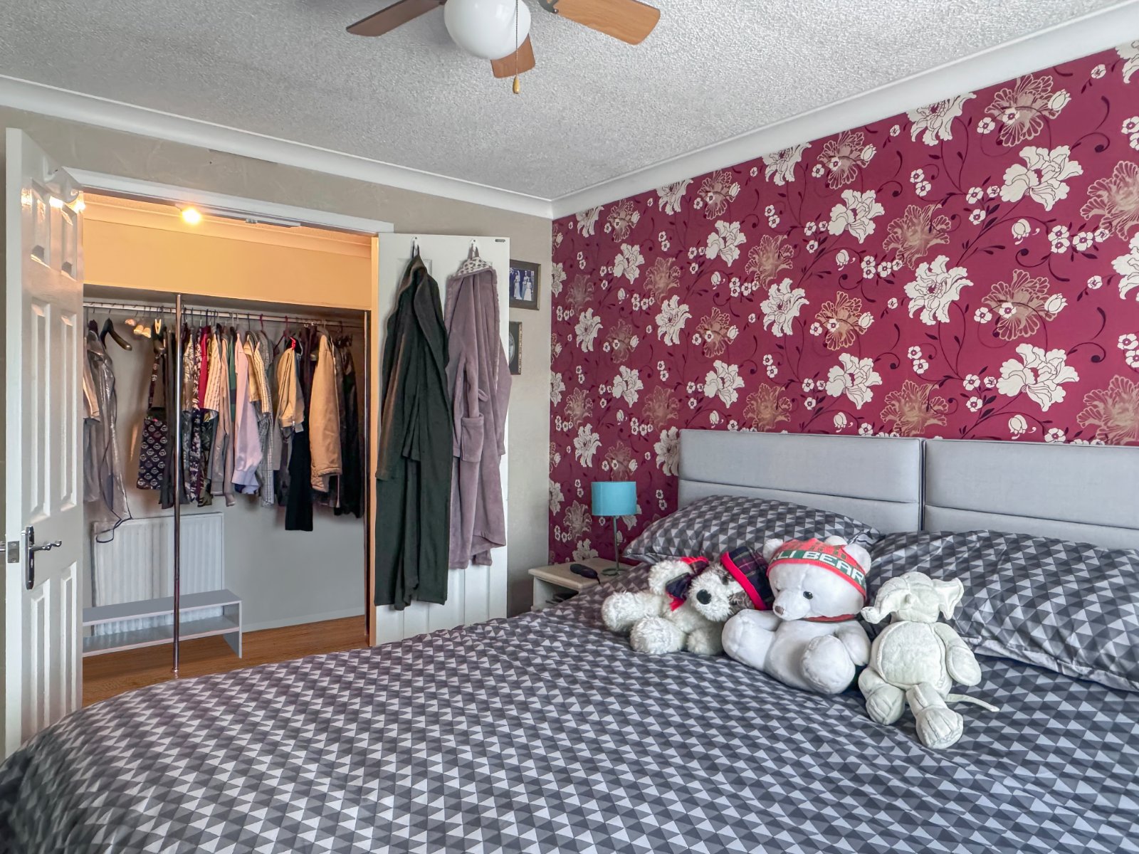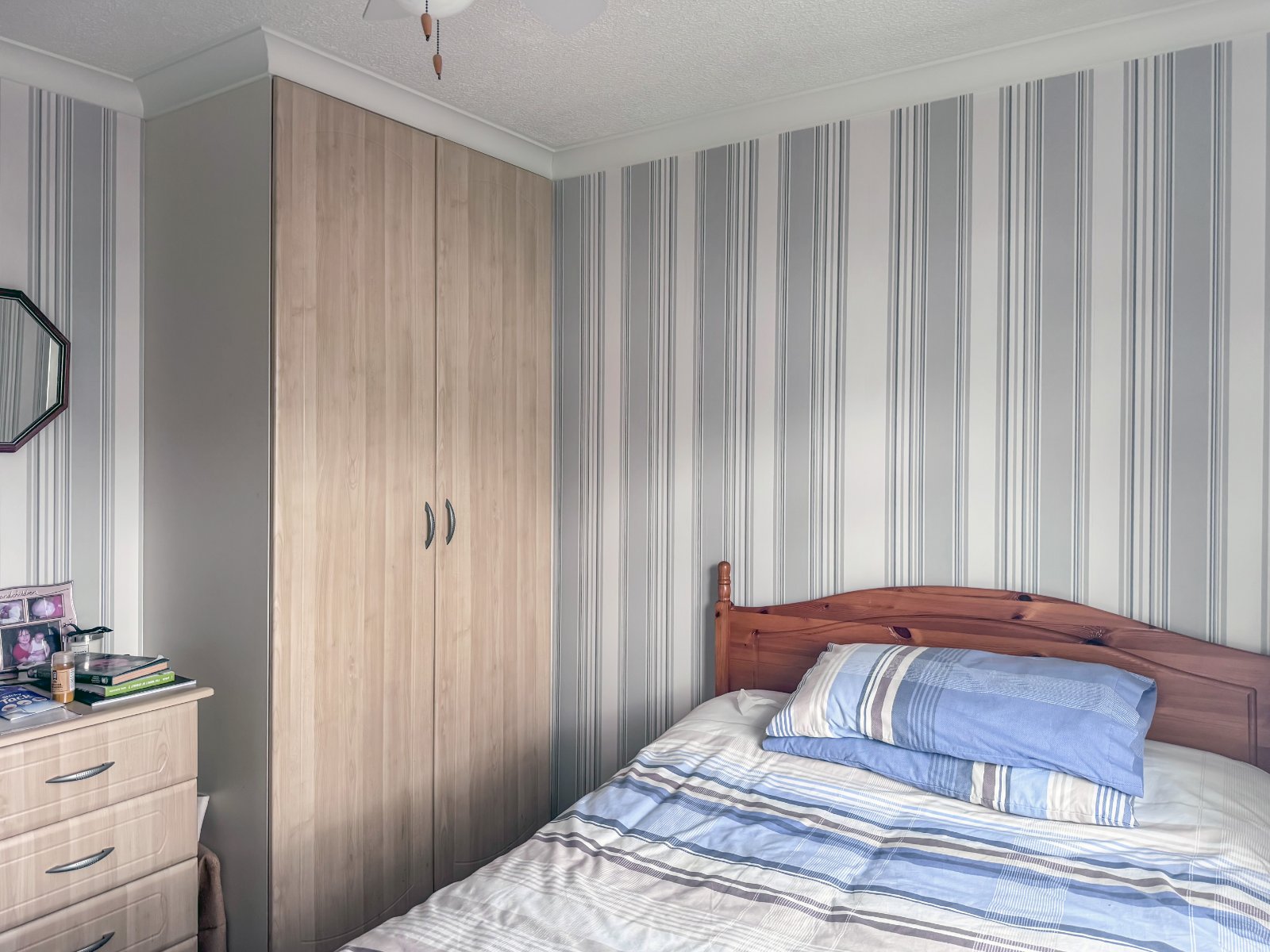 Panelled doors to Bedrooms, Bathroom, Kitchen and Living area. Panelled door to recessed Cupboard with hanging space. Radiator. Thermostat control panel. Coving to textured ceiling with access to loft space.