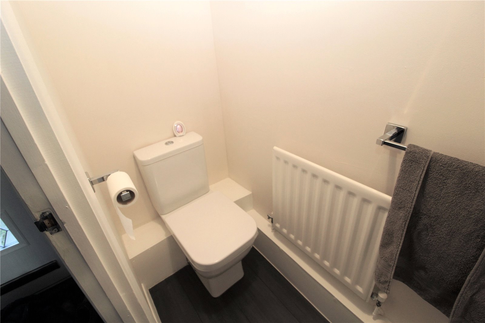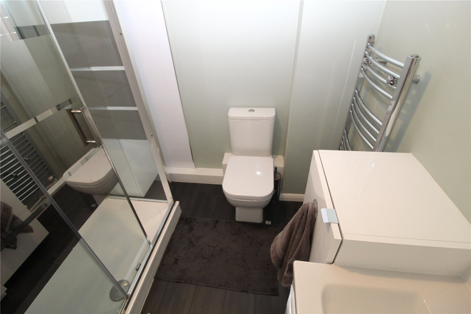 Fitted with a two piece suite comprising low flush w.c, Wash hand basin to vanity/cupboard unit. Radiator. Smooth plastered walls. Textured ceiling.