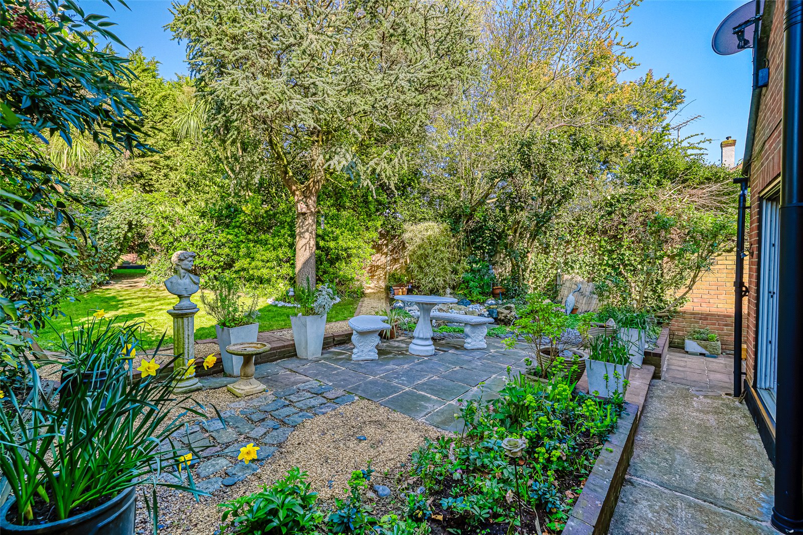 Externally is the beautiful, landscaped garden, front driveway and garage.