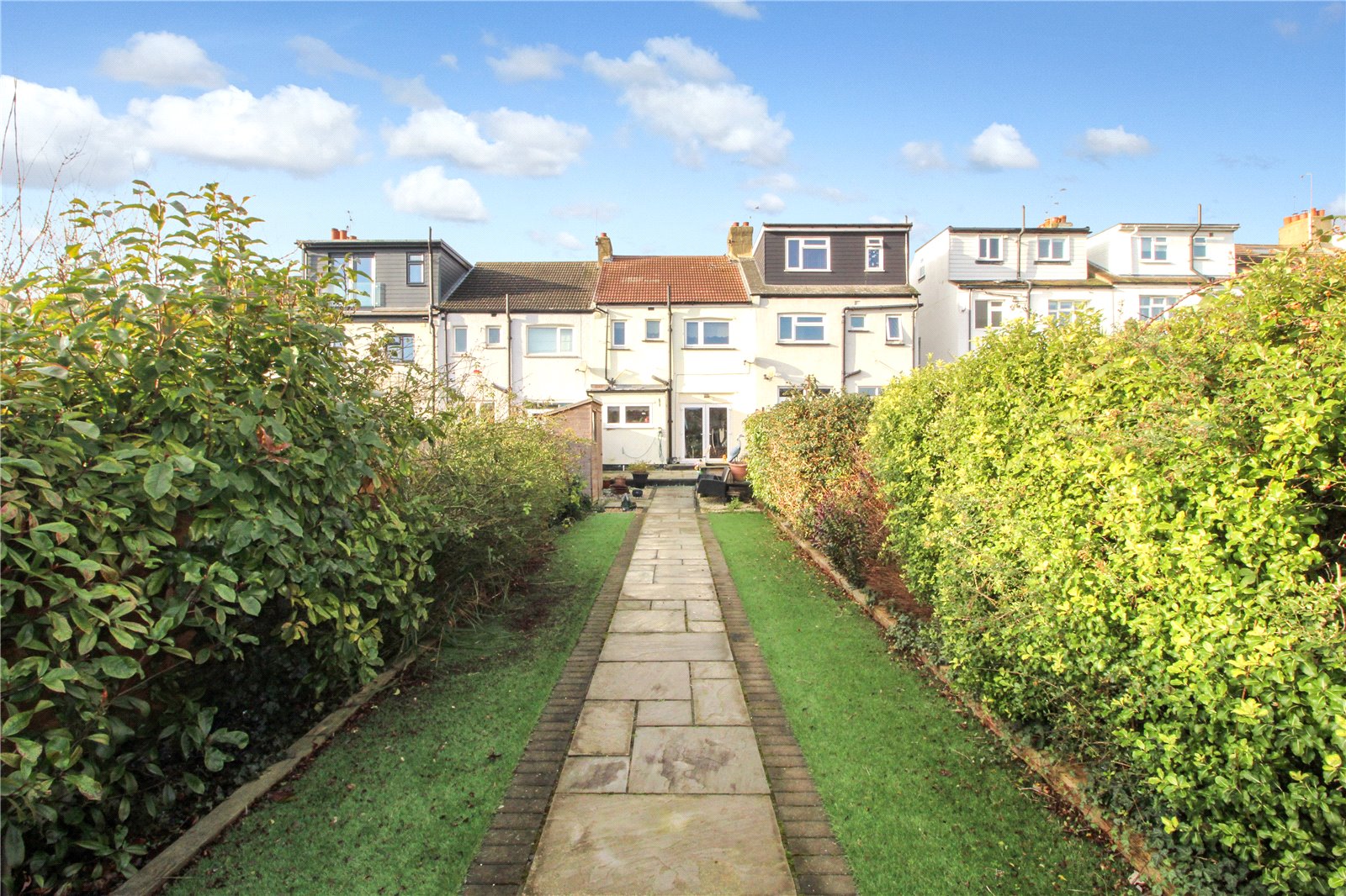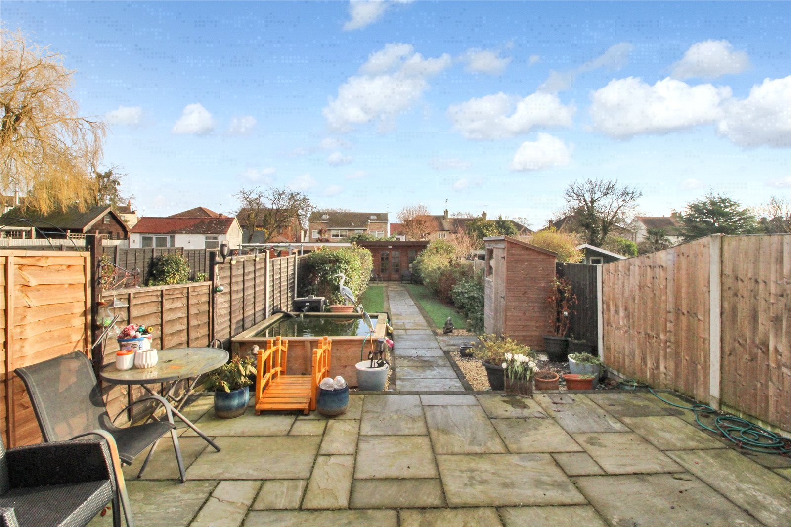 Approx 80ft in depth, mostly laid to lawn with some paved area, summerhouse to one end, outside tap.
