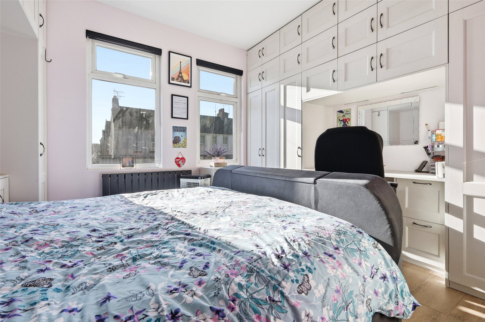 Two UPVC double glazed windows to front. Wall mounted designer radiator. Range of fitted wardrobe units incorporating dressing table and overbed fitted storage cupboards, fitted bedside cabinets. Wood effect laminate flooring. Smooth plastered ceiling.