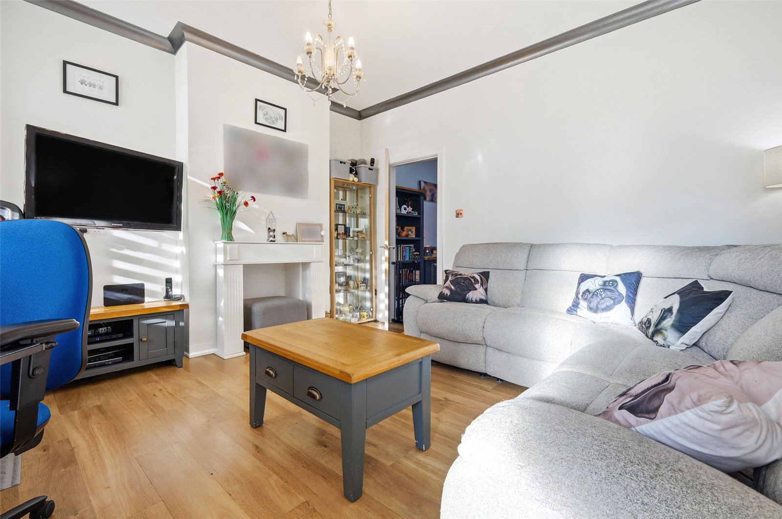 into bay. Large UPVC double glazed window to front. Wall mounted radiator .Wood effect laminate flooring. Feature fireplace with wooden mantle. High level skirting. Coved cornice to smooth plastered ceiling. Door to rear provides access to the: