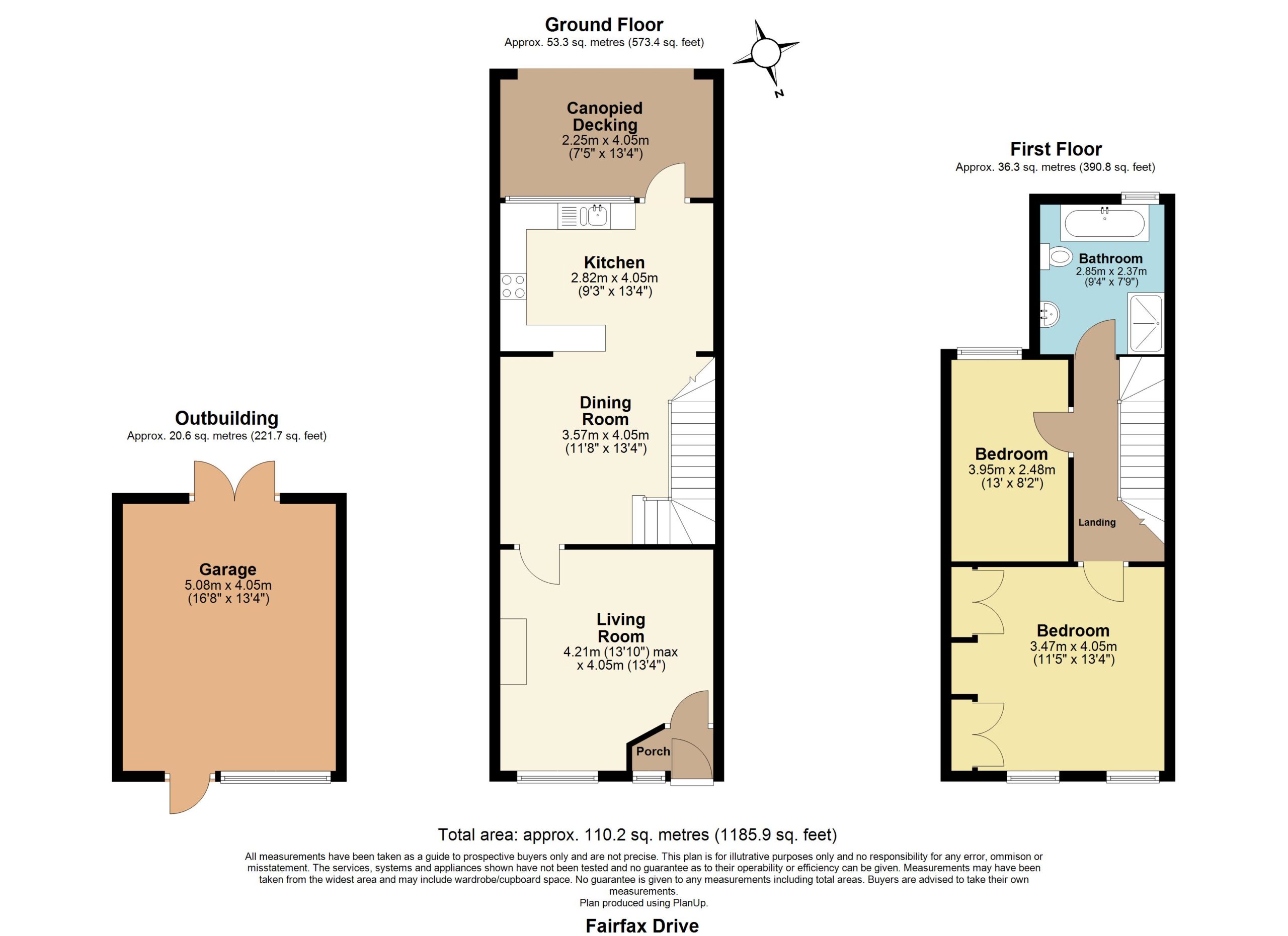 Large raised decking area commencing to rear of kitchen/family room with wooden pergola. Steps down to garden . Garden is laid to artificial lawn with mature planted borders with feature fish pond. Exterior power and lighting. Access to garage.