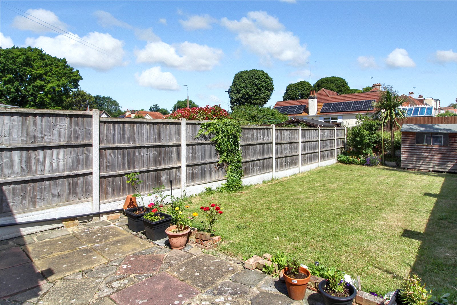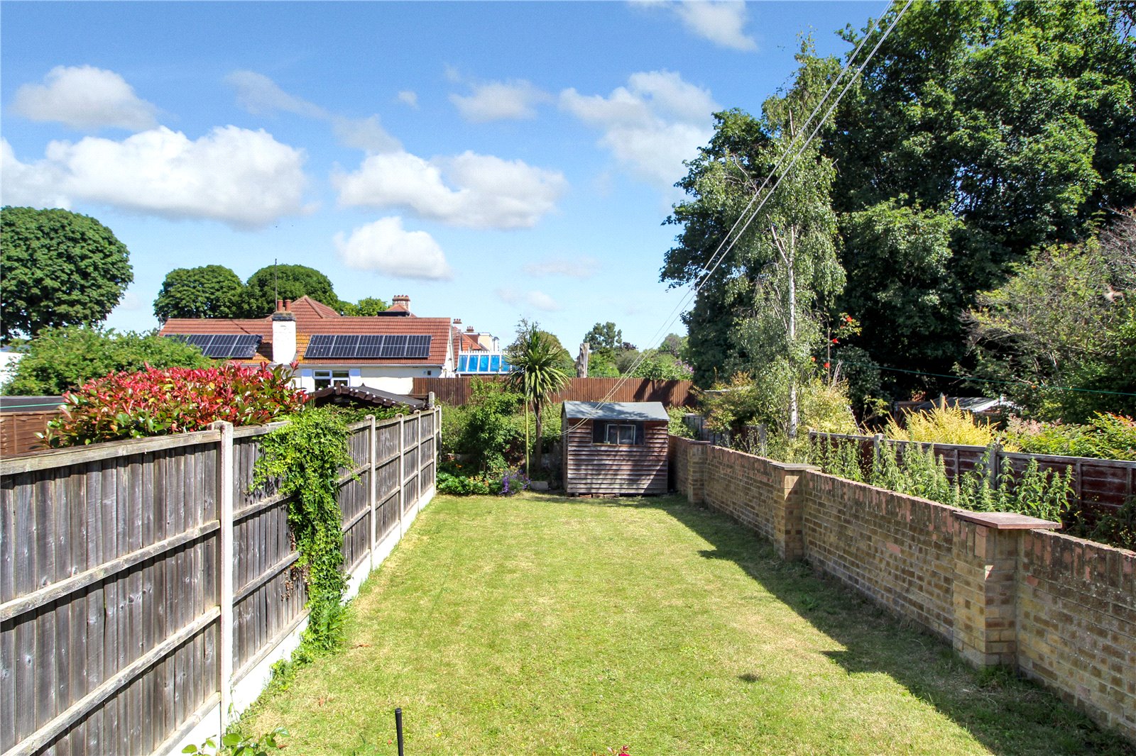 Commencing from the kitchen with steps down to a paved patio area. The remainder of the garden is laid to lawn. Garden gate to the walled, East boundary. Fenced to the West boundary and hedged to the rear. Outside water tap. Garden shed.