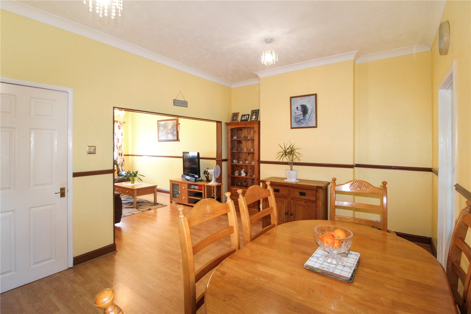 uPVC double glazed window to front. Wood-effect laminate flooring. Skirting. Television aerial point. Radiator. Two wall light points. Ceiling light.