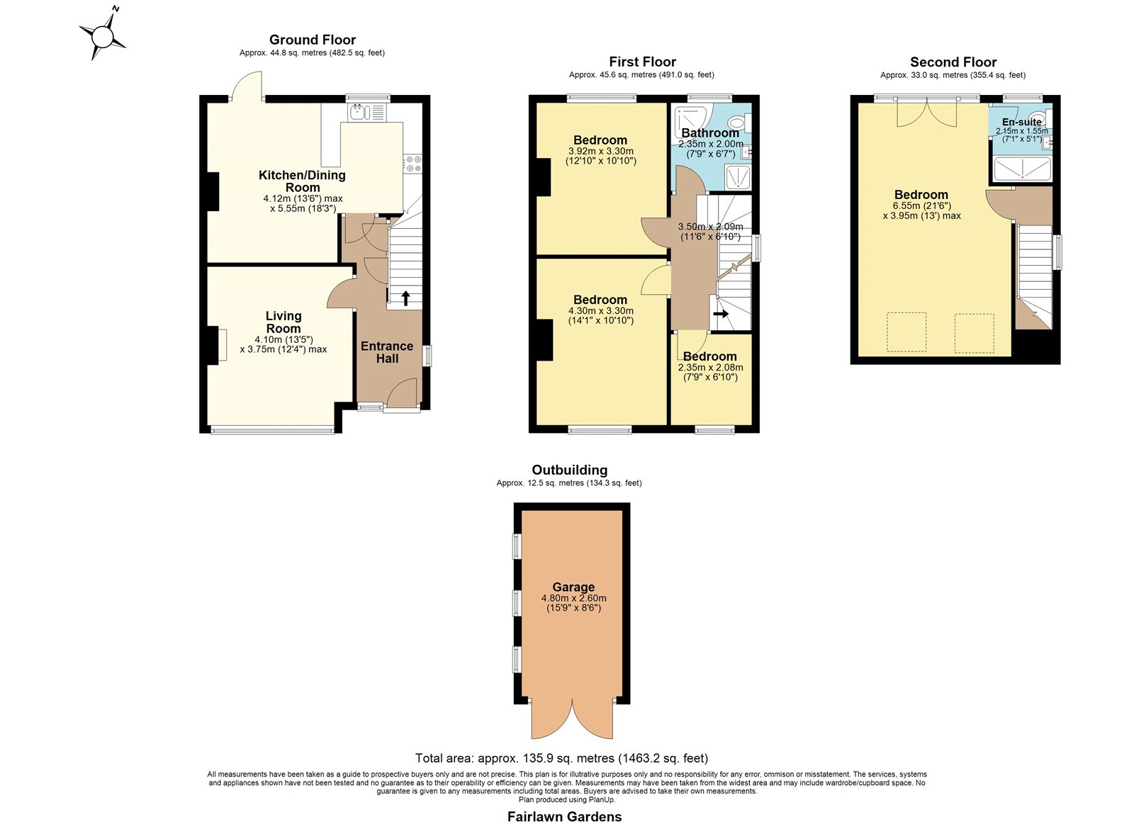 Double obscured glazed window to rear. Fitted with a modern and contemporary three piece suite comprising concealed flush WC. Countertop recessed wash basin with mixer tap and storage cupboard beneath and larger than average enclosed shower cubicle with wall mounted mixer, rainfall showerhead, plus further adjustable showerhead and glass shower screen. Chrome heated towel rail. Tiled effect vinyl flooring. Coved cornice to sooth plastered ceiling with recessed LED lighting. Ceiling mounted extractor fan.