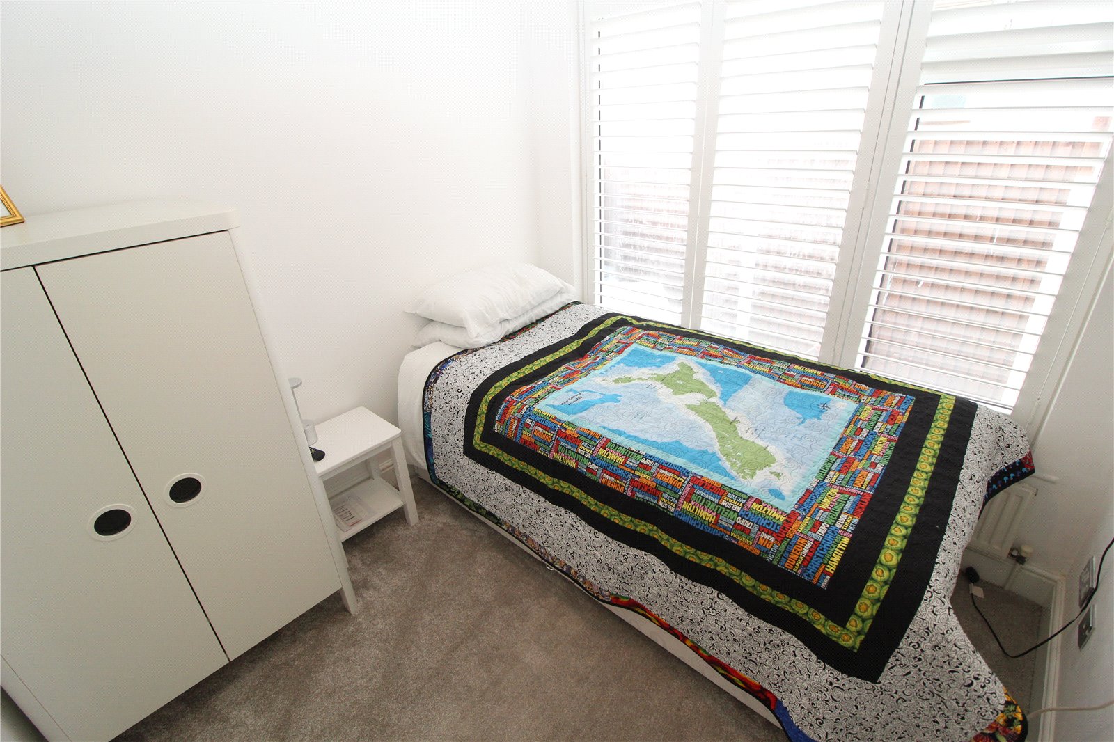 Upvc double glazed window to side with shutter blind. Smooth plastered walls and ceiling with coved cornicing. TV aerial point.