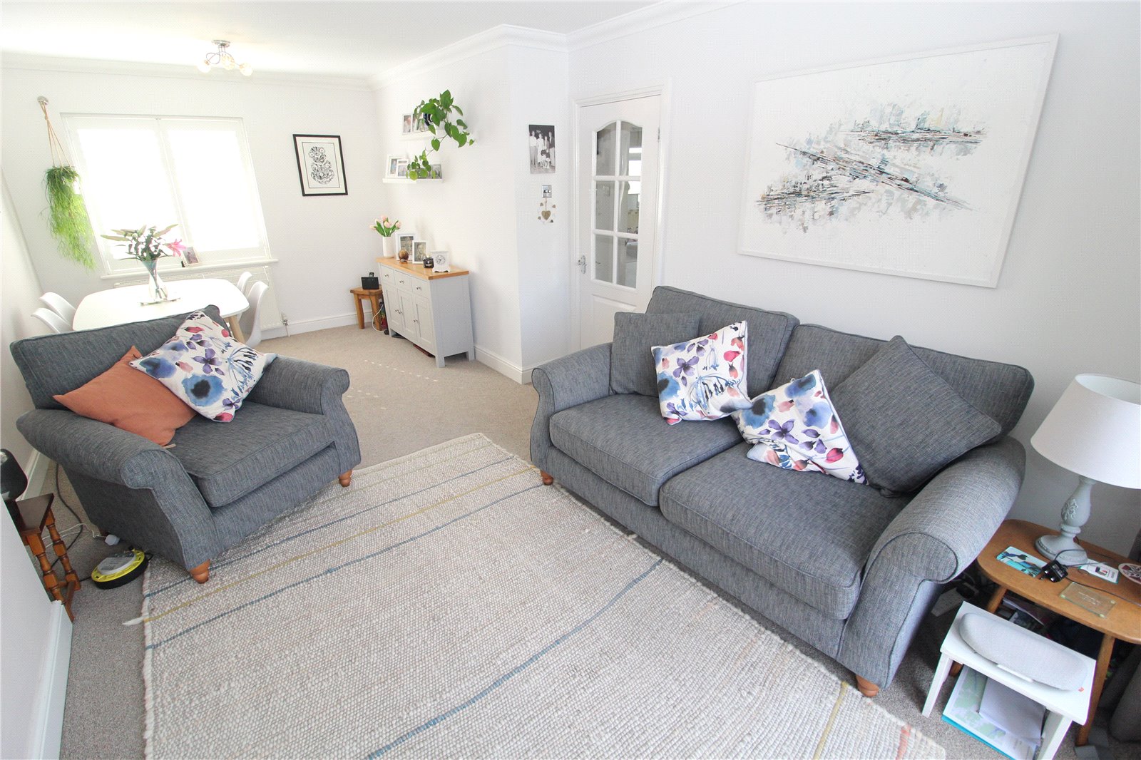 Coconut matting area. Opaque Upvc double glazed window to side. Smooth plastered walls and ceiling with inset spotlights. Coved cornicing. Double radiator. Alarm control panel. Loft access hatch. Built-in storage cupboard housing fuse board and meters. Further storage cupboard. Wall mounted central heating digital thermostat. Laminate wood effect flooring.