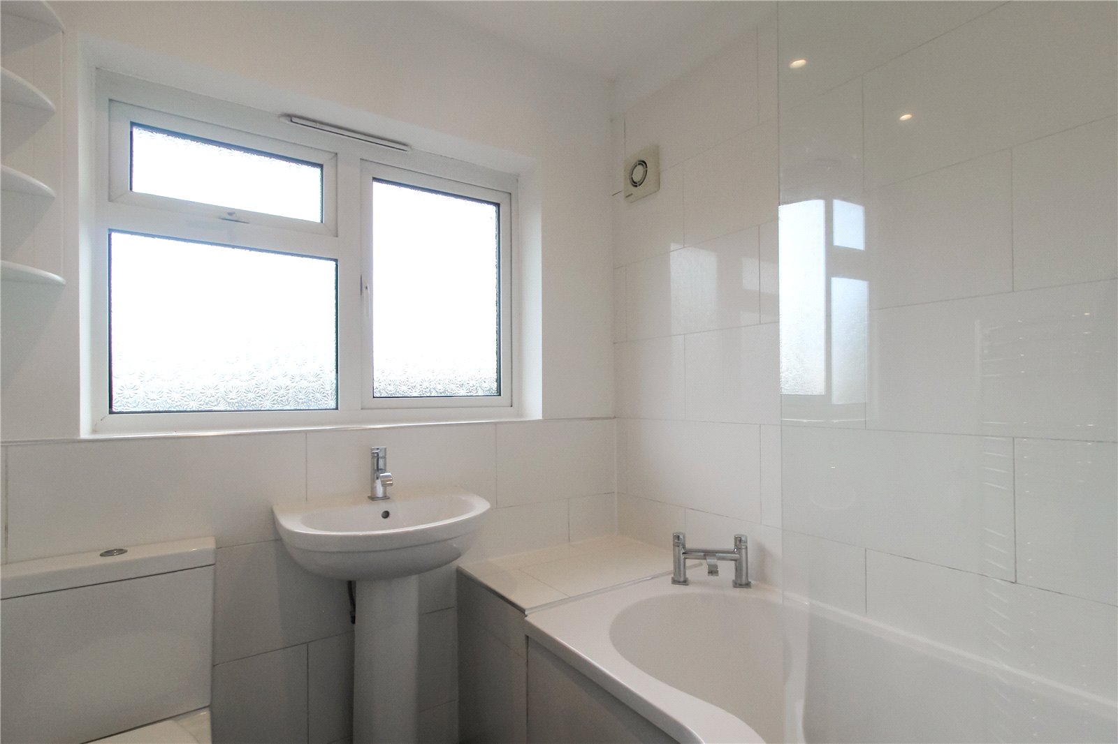 UPVC double glazed obscure window to rear aspect. Whitewash three-piece bathroom suite including low level wc, enamel hand wash basin with chrome mixer tap, and panel enclosed bath with chrome mixer tap and shower attachment. Tiled flooring and walls with smooth plastered finish to the ceiling with fitted spotlights.