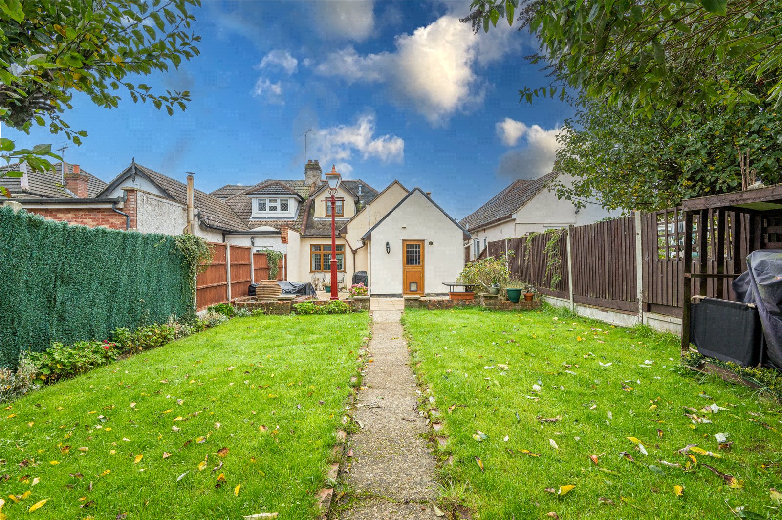 To the front of the property off street parking facilities are provided for numerous vehicles by way of independent driveway with a raised corner flower bed. Side access gate. External lighting.
