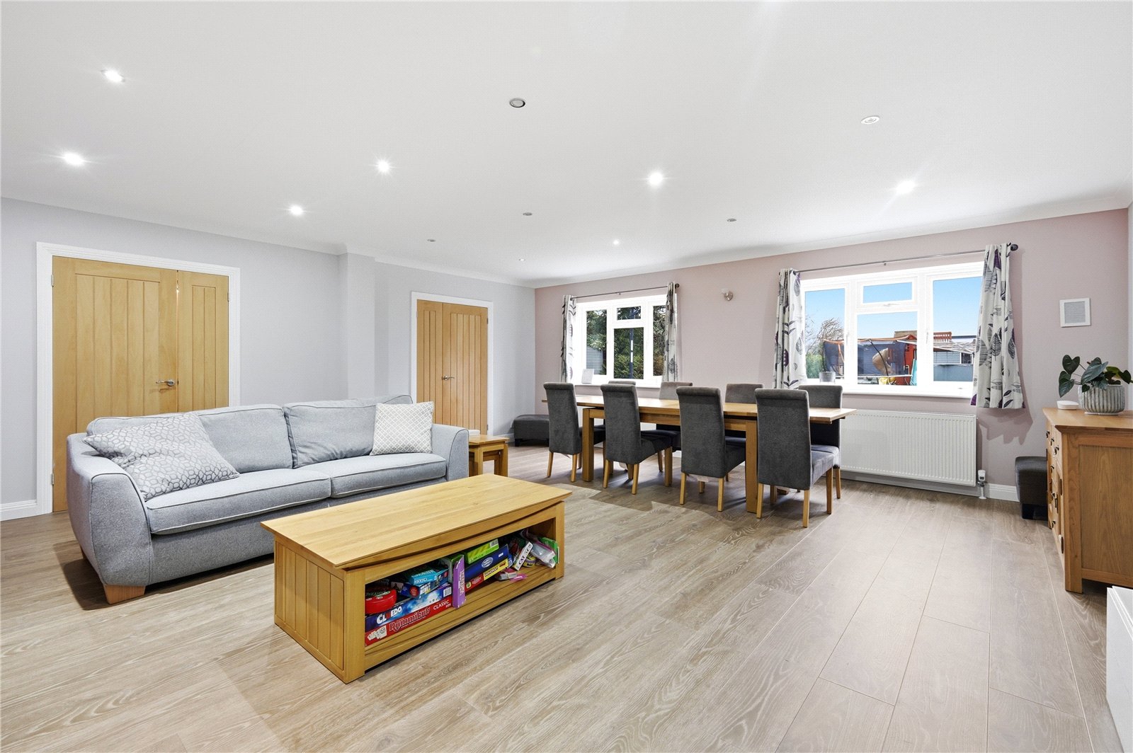 Two large UPVC double glazed windows to rear overlooking rear garden. Internal doors to side leading to play room. Two wall mounted radiators. Wood effect laminate flooring. High level skirting. Coved cornice to smooth plastered ceiling with recessed LED lighting.