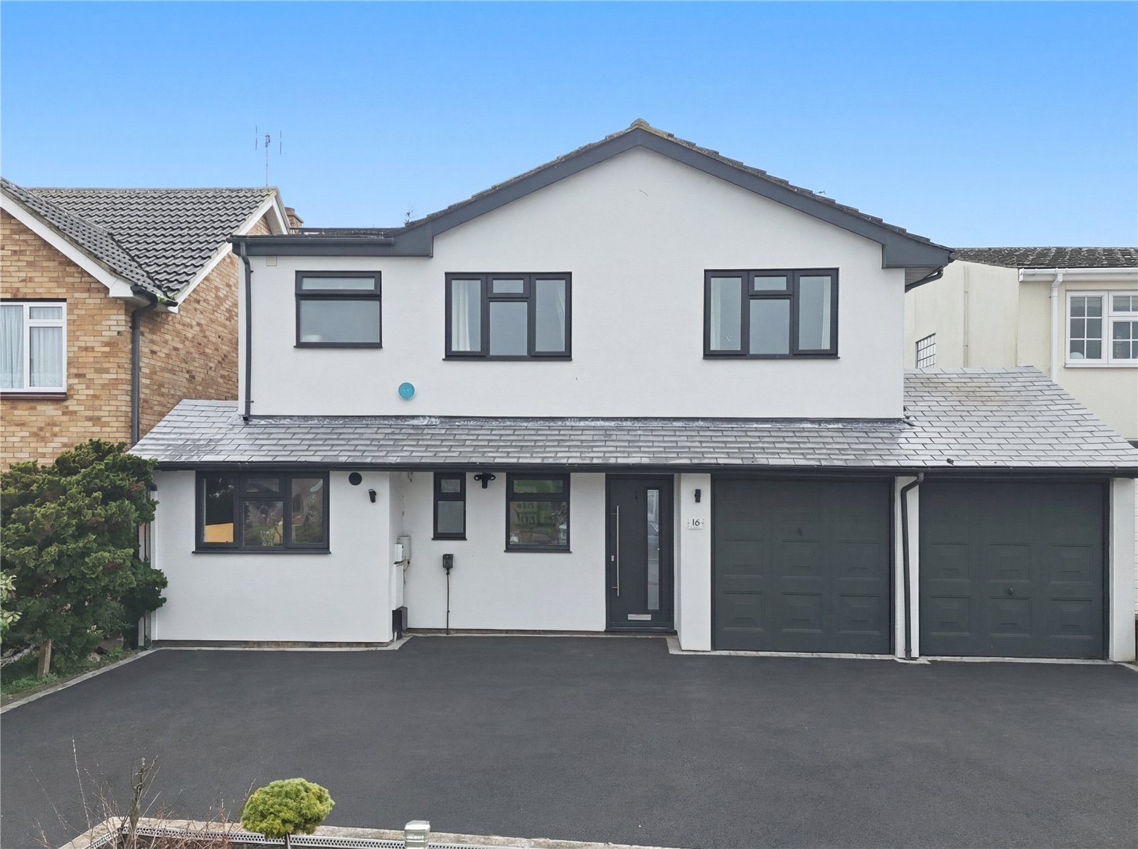 The property benefits from a large in and out resin driveway to front providing ample off street parking for multiple vehicles with raised rendered planted central section incorporating integrated lighting. Electric car charger port. Exterior power and lighting. Access to side.