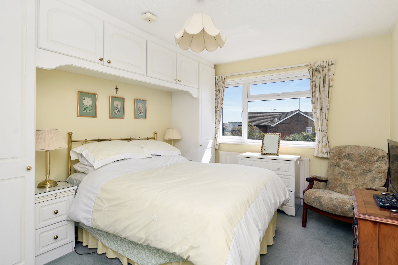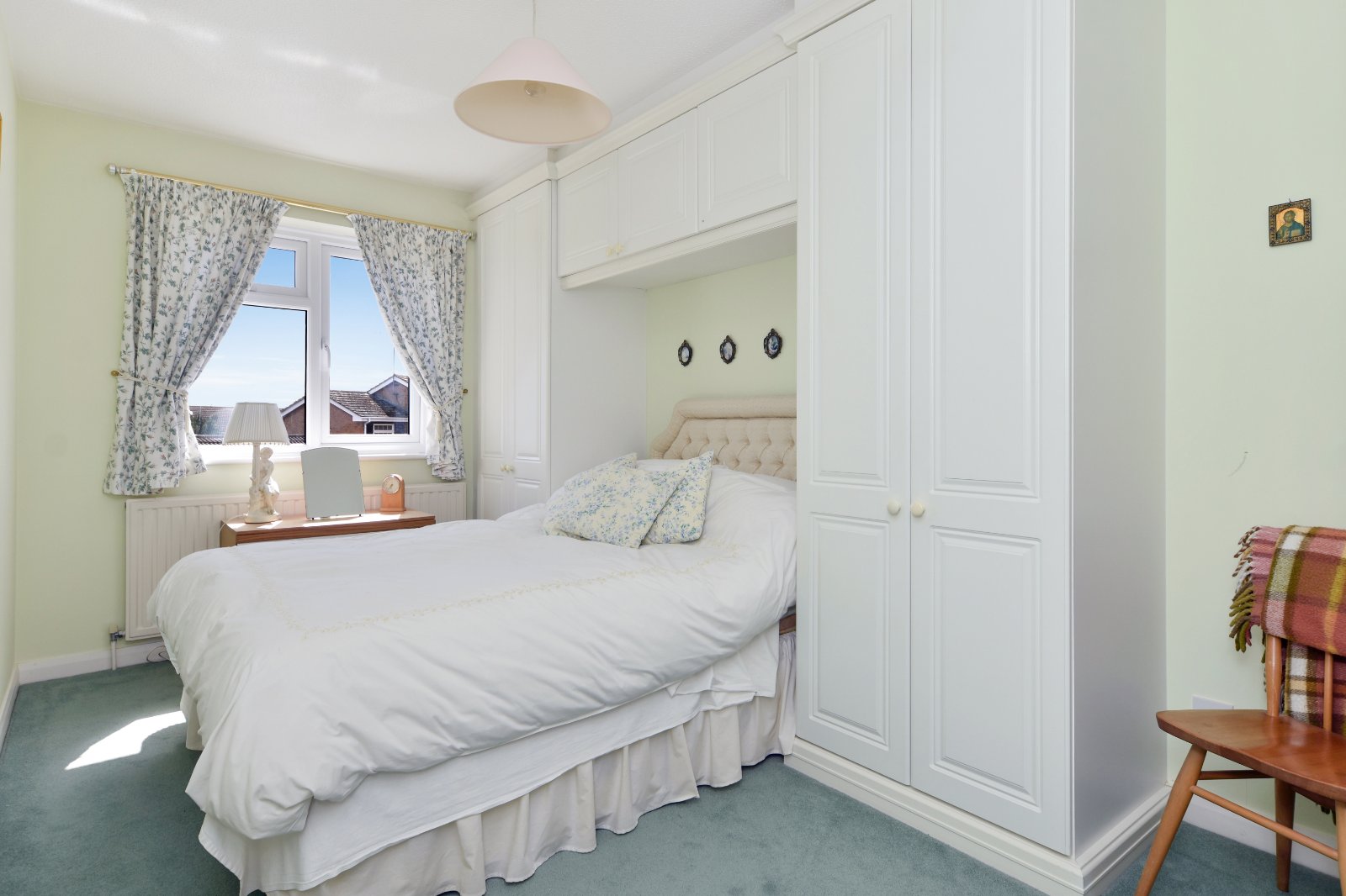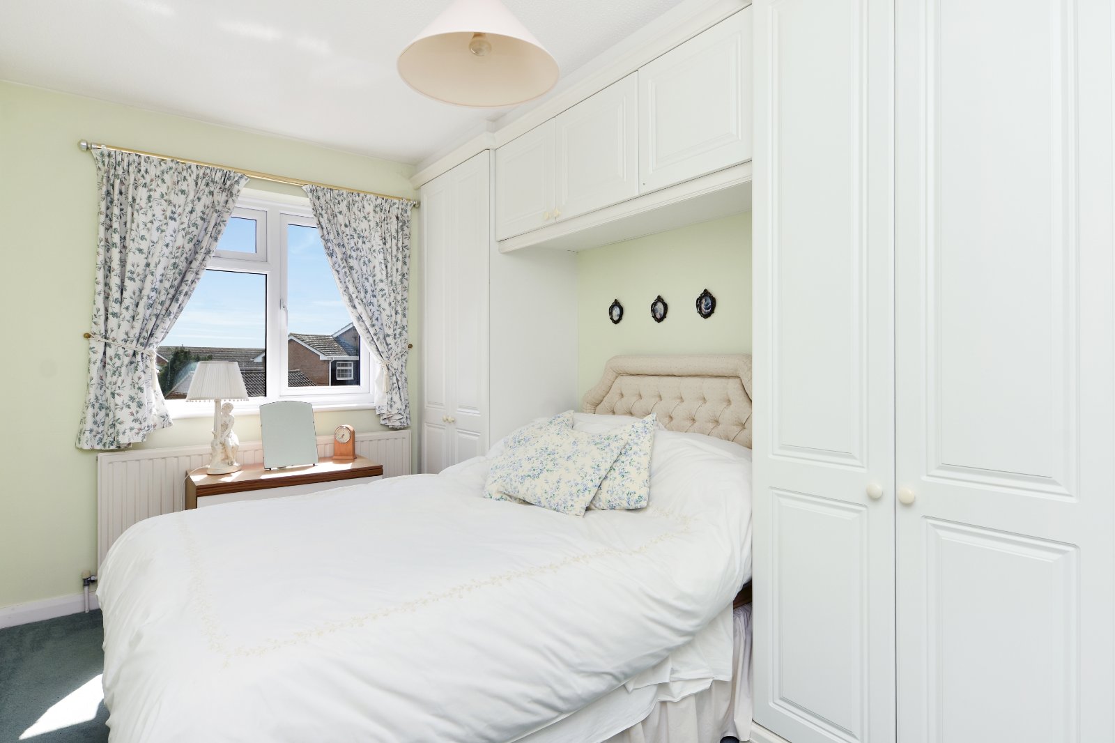 uPVC double glazed window to rear aspect. Fitted with a range of built-in wardrobes including twin door units with matching over bed head storage cabinets. Radiator. Coving to textured ceiling.