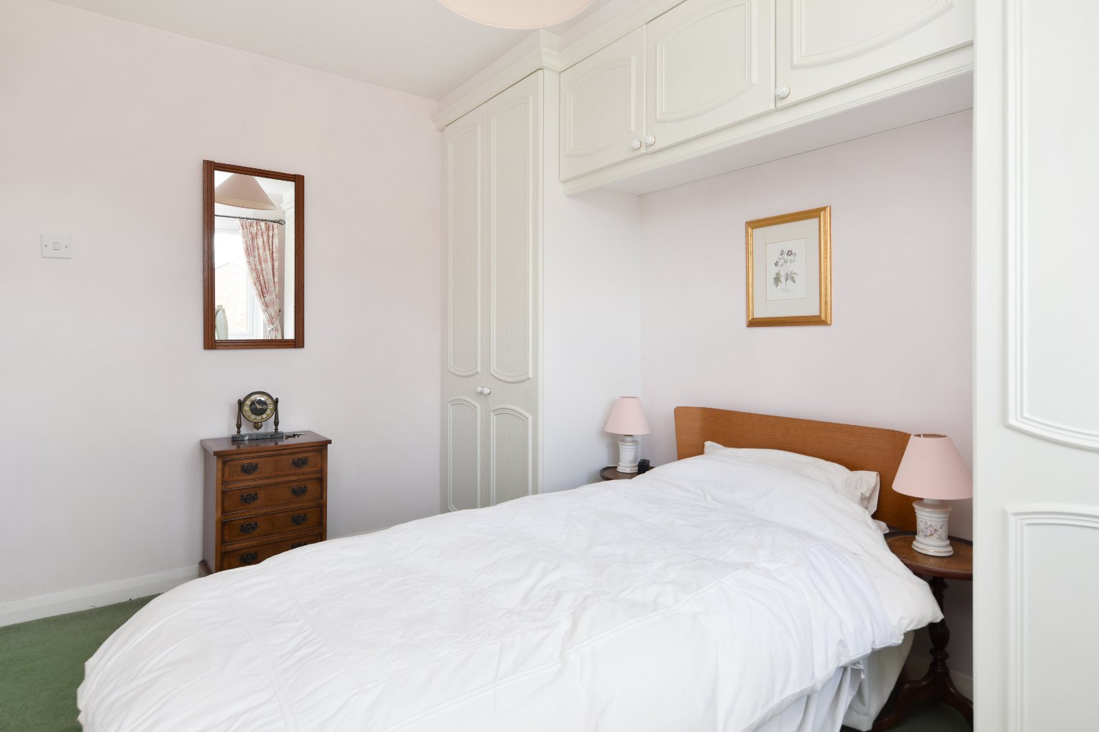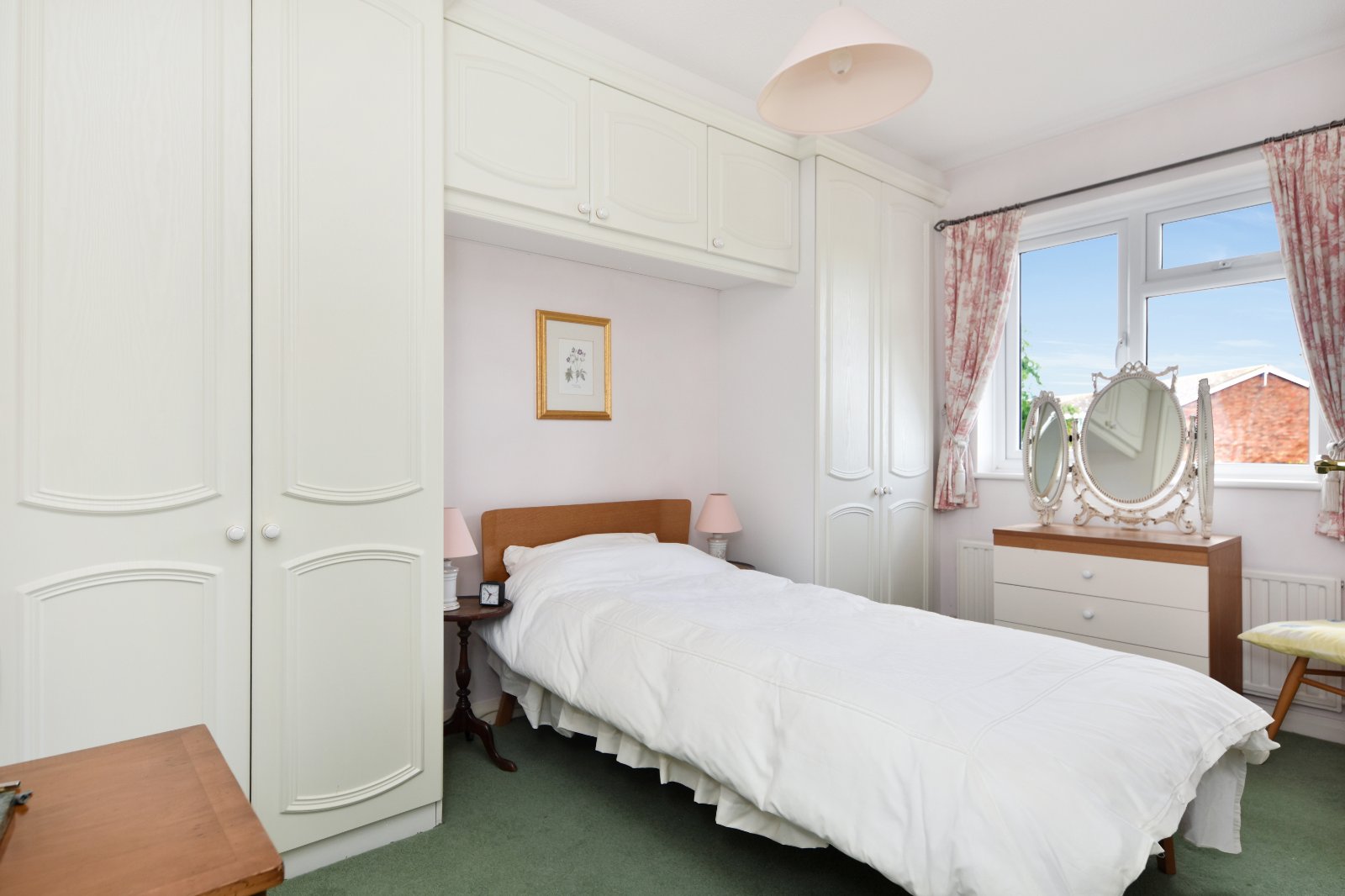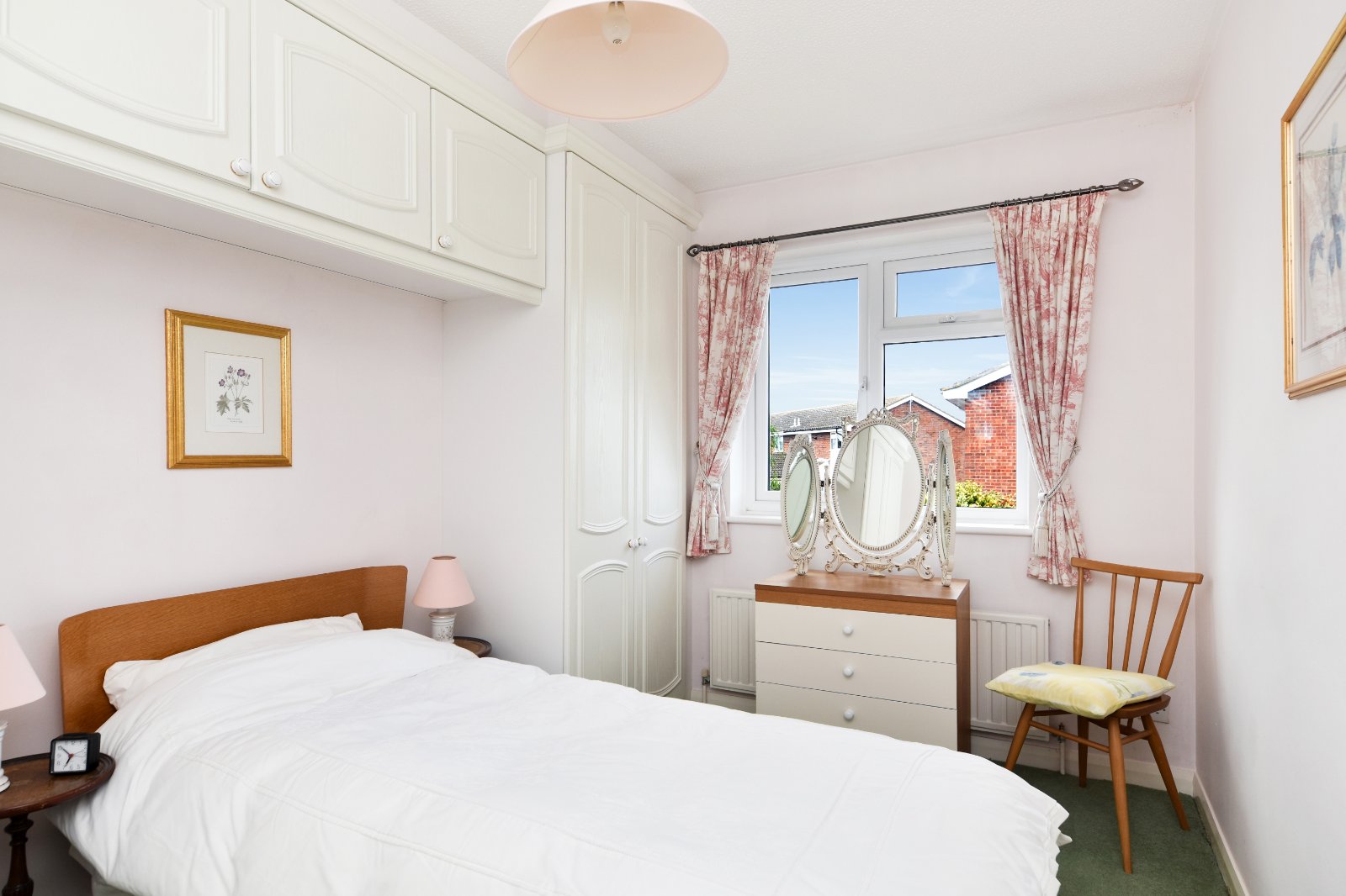 uPVC double glazed window to rear aspect. Fitted with a range of built-in wardrobes including twin door units with matching over bed head storage cabinets. Radiator. Coving to textured ceiling.