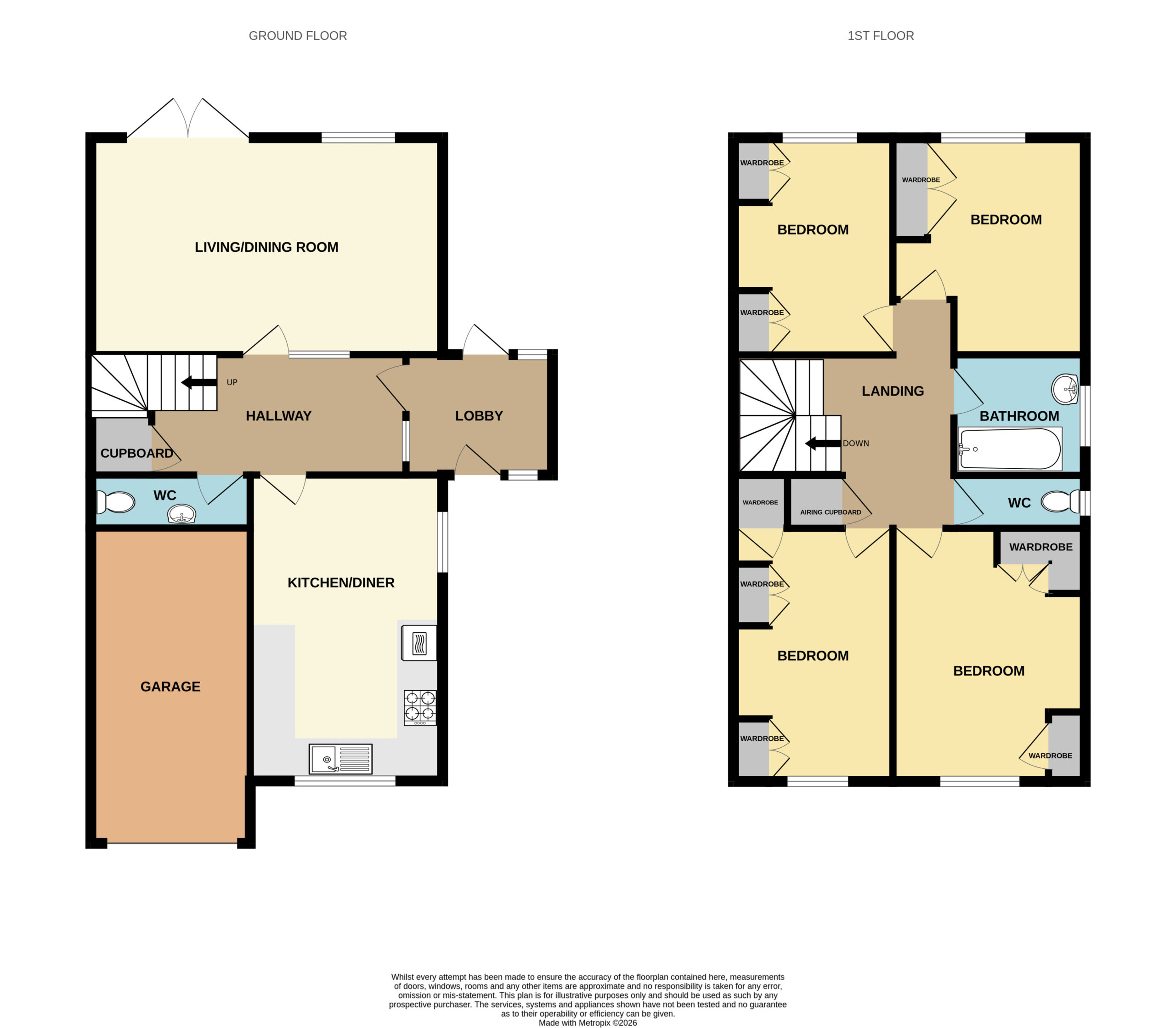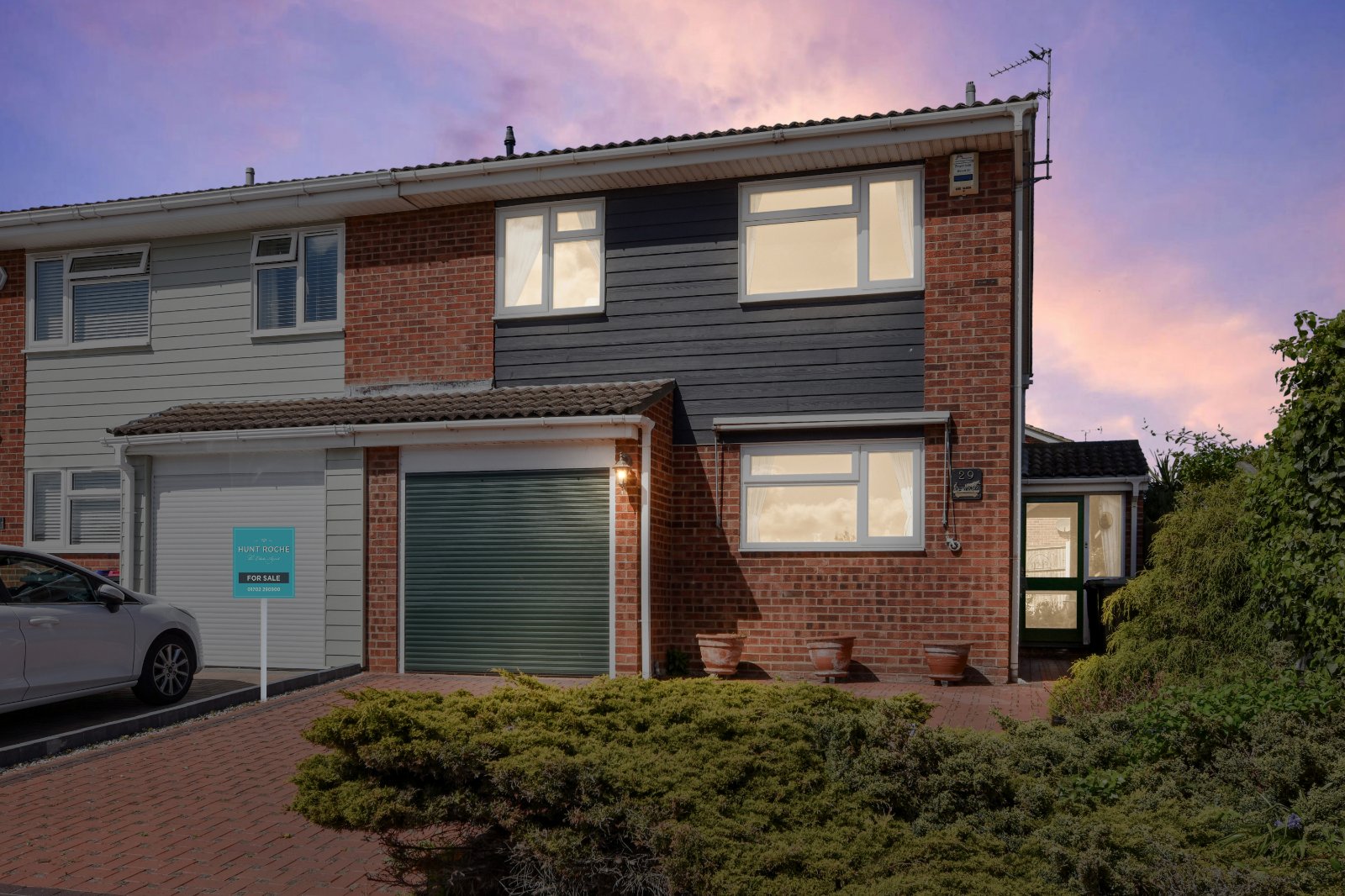 The property offers generous accommodation throughout, including FOUR DOUBLE BEDROOMS, all with fitted furniture, a dual aspect Kitchen/Breakfast Room, Ground Floor Guest W.C., and a delightful Living/Dining Room spanning the rear of the home. Externally, there is a generous rear garden offering ample scope for landscaping, along with off road parking via a driveway and access to a garage with electric roller shutter door.