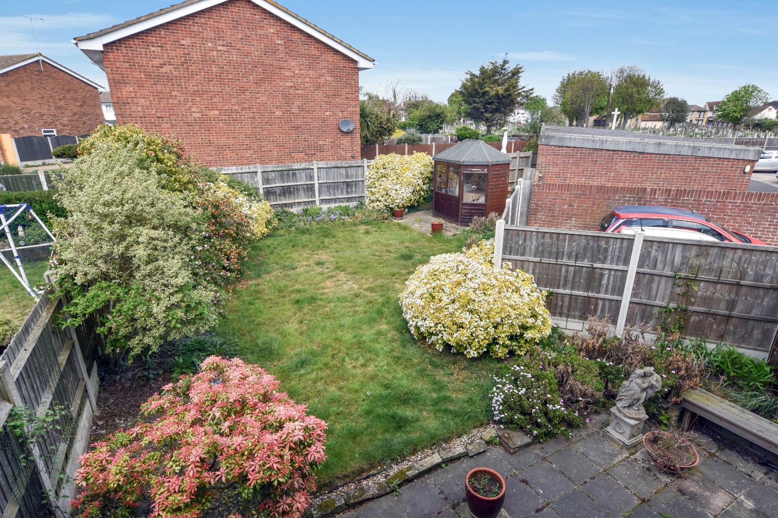 Generous frontage with established planting and shrubbery. Block paved driveway providing off road parking and access to the Garage. The frontage offers further potential to increase parking provision, subject to the removal or reconfiguration of the existing shrubbery. External water tap.