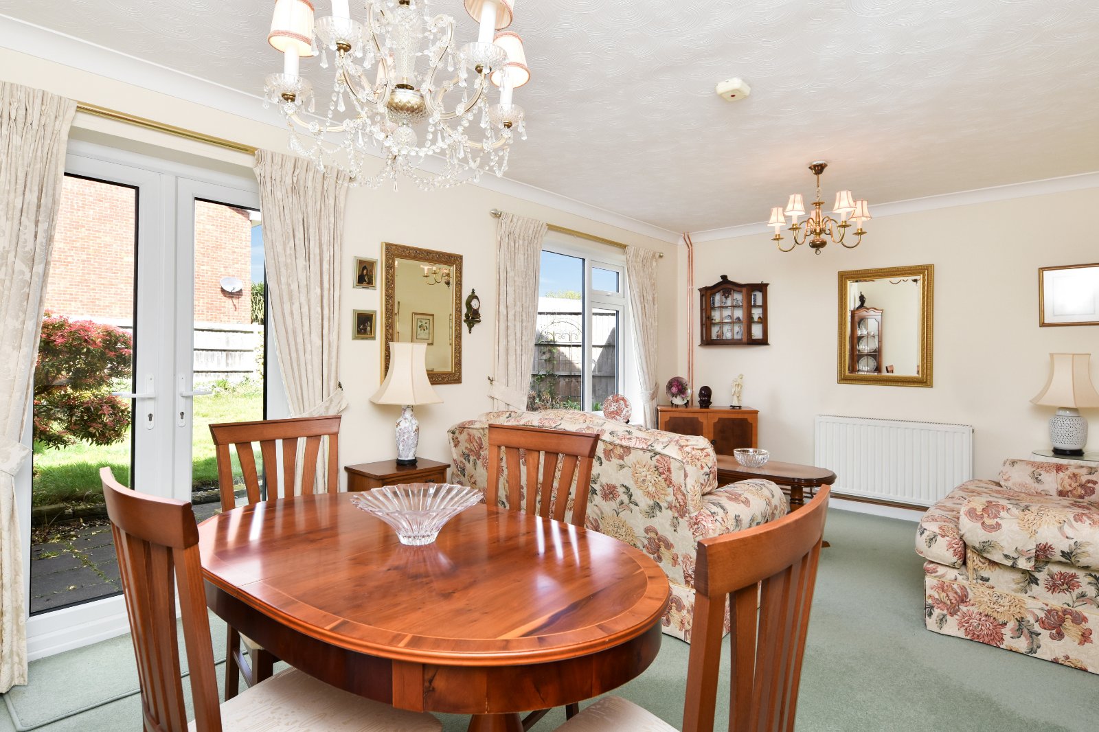 A bright room with a pair of uPVC double glazed French doors opening onto the rear garden, complemented by a further uPVC double glazed window to the rear aspect allowing for excellent natural light. Two radiators. Coving to textured ceiling.