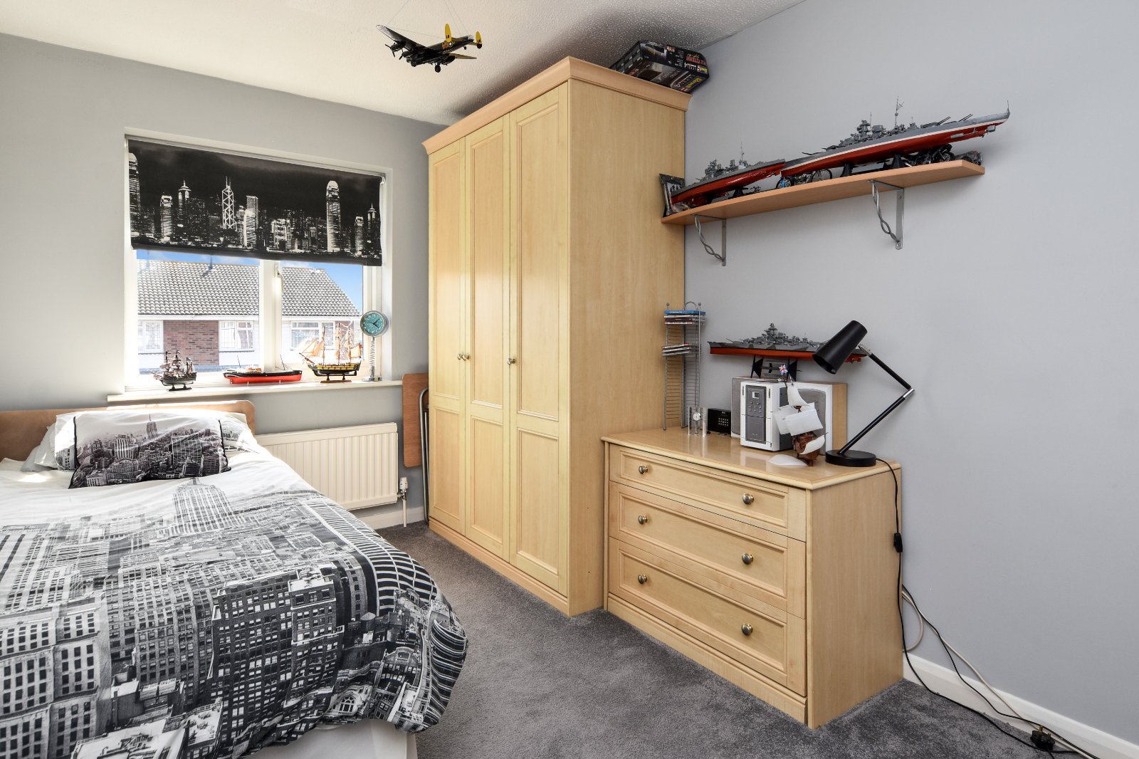 uPVC double glazed window to rear aspect. Radiator. Laminate wood effect flooring. Wardrobe with matching drawer stack (to remain). Textured ceiling.