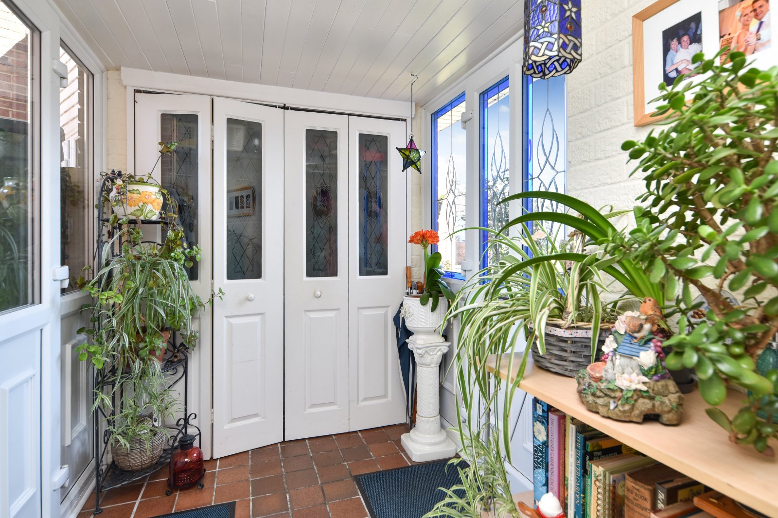 uPVC entrance door inset with attractive part coloured leaded double glazed inserts with matching uPVC double glazed window to front aspect, to;