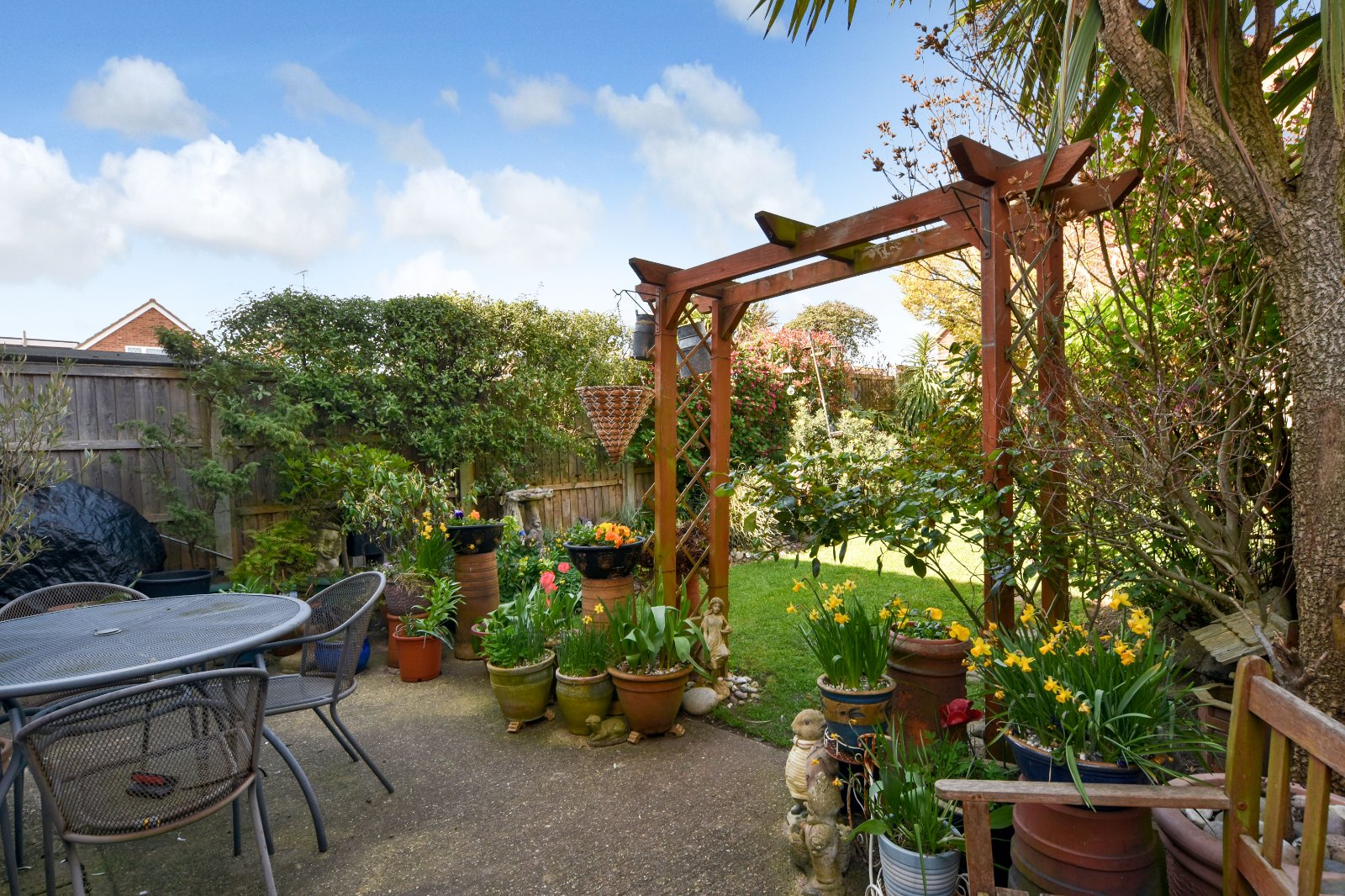 The attractive rear Garden is approached via the Porch and the Living Room and commences with a patio seating area. The remainder of the garden is approached via an attractive pergola walkway to a mainly laid to lawn area with fencing to all aspects. Sculpted flower bed borders inset with an array of established plants. Sunken fish point. Exterior water tap.