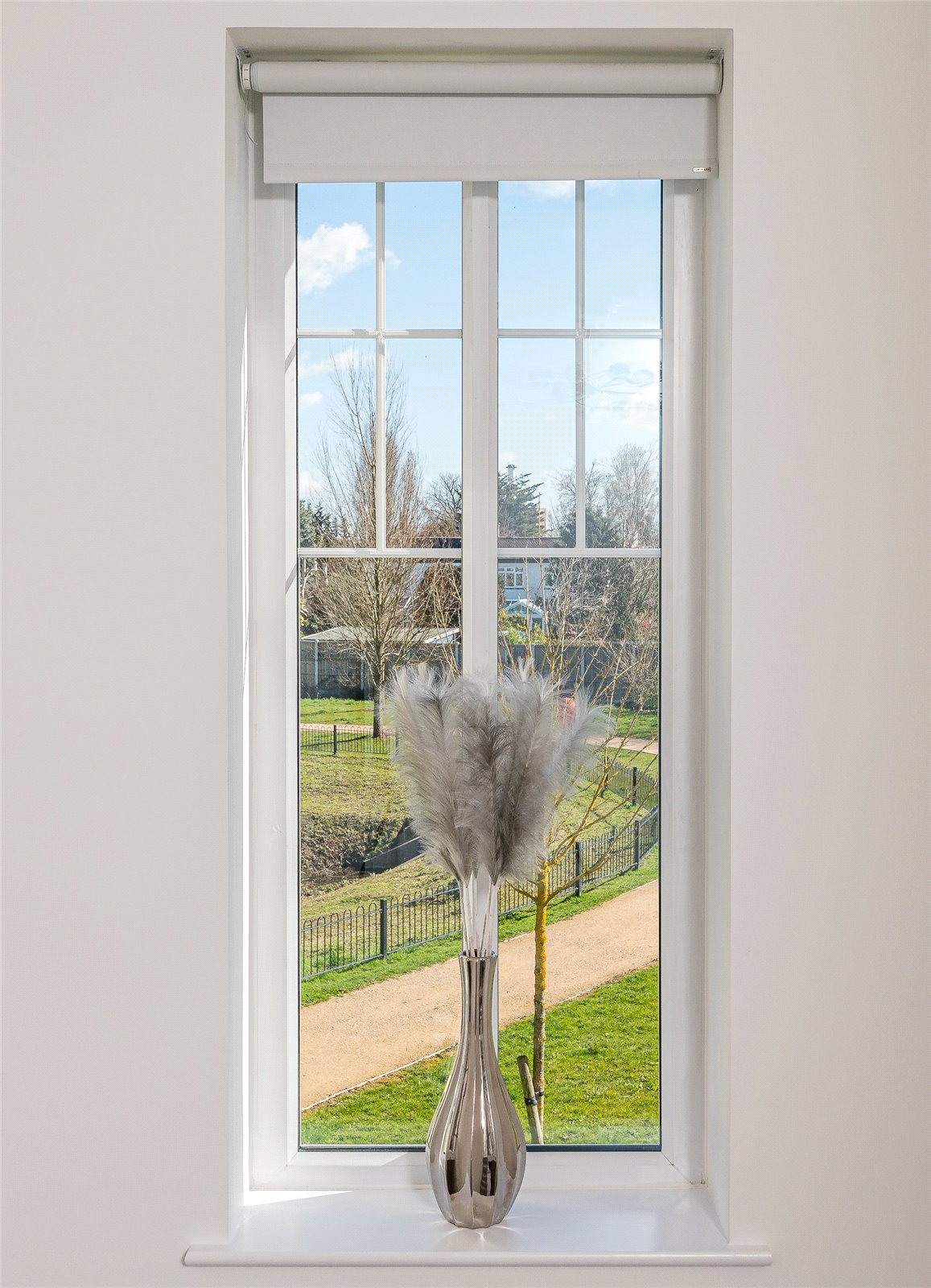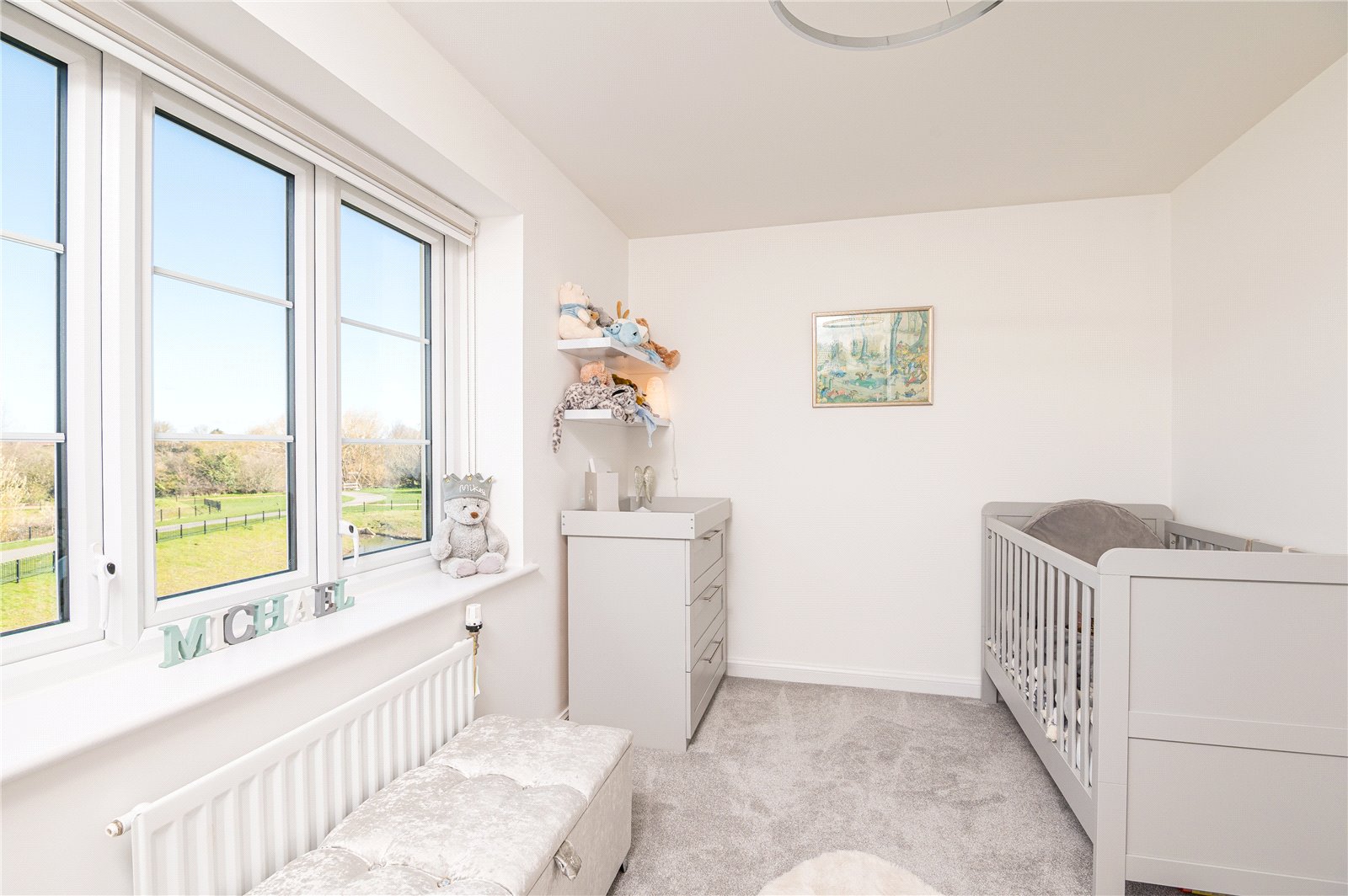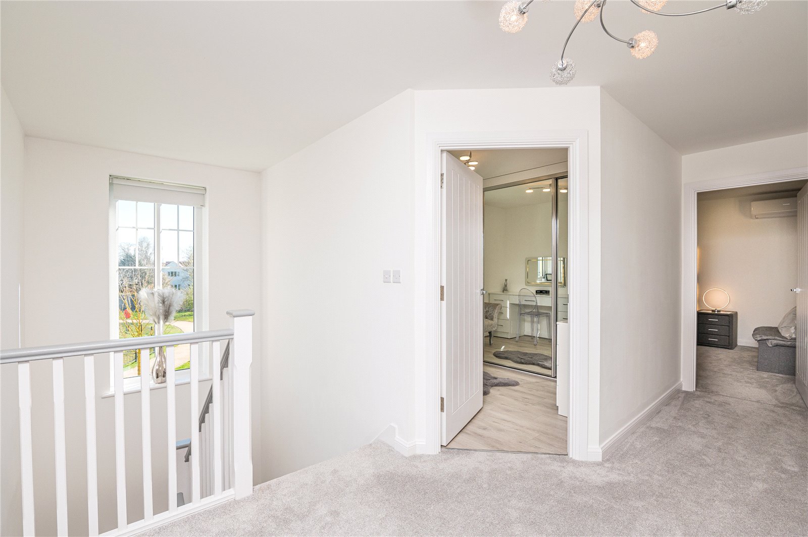 A tall casement window gives panoramic views across greensward and ponds to side. Radiator. Access to insulated roof space. Lipped skirting. Shaker style doors with contemporary fittings lead off to principal first floor rooms: