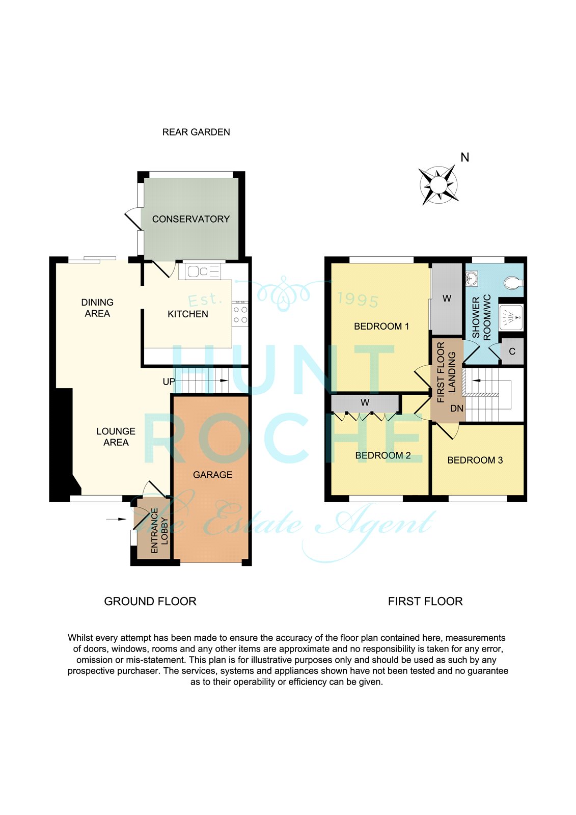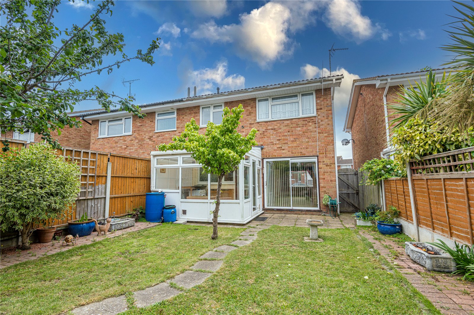 The rear garden commences from the conservatory and lounge/dining room, with a paved patio terrace ideal for dining 'al fresco'. The garden is attractively laid to lawn, with fencing to both sides and rear boundary, and dwarf brick retained raised feature flowerbeds. Hardstanding for timber garden shed with power connected. External water supply. Secure gated side access to the front of the property.