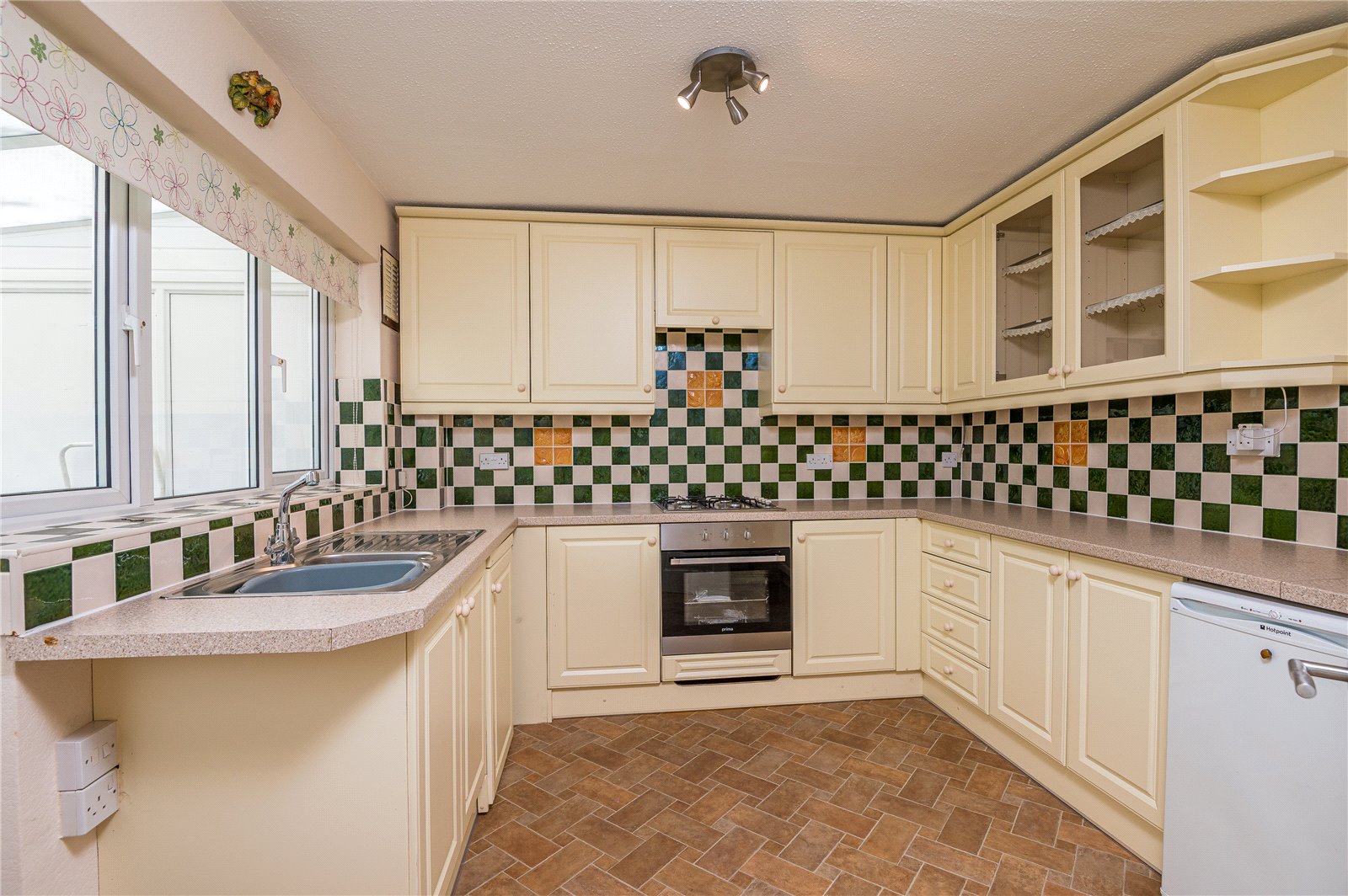Obscure double glazed door giving access to conservatory/sun lounge, and double glazed window to rear. The kitchen is fitted with a range of base and pelmeted eye level cabinets, with inset brushed steel fan assisted electric oven with four ring gas hob and concealed extractor canopy above. Rolled edged working surfaces with inset one and a quarter bowl stainless steel sink unit and mixer tap. Ample appliance space. Full height cupboard. Ceramic tiled splashbacks to all working surface areas. Twin glazed display cabinet.