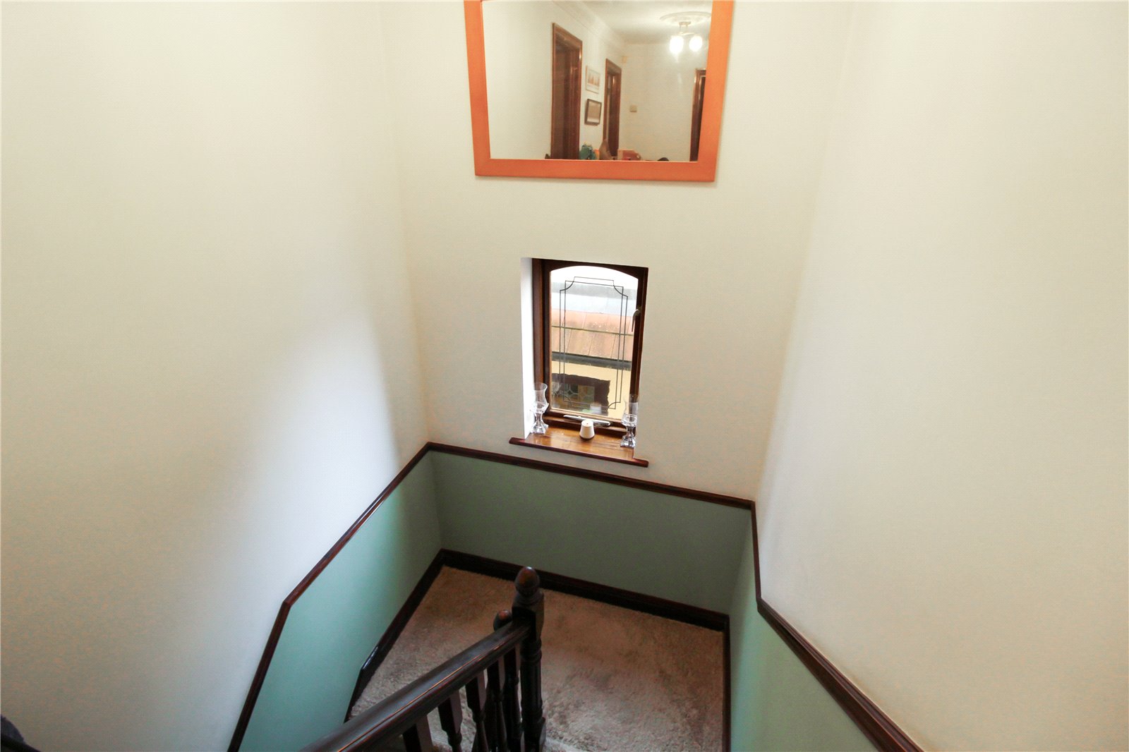 Large L shaped hallway, carpet to floors stairs to first floor, doors to all ground floor rooms, smooth ceiling, radiator, ceiling light x 2.