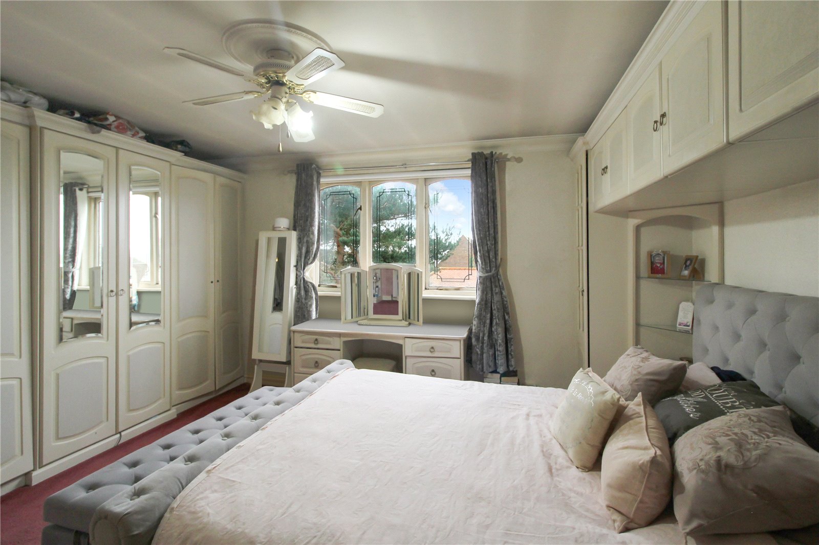 Double bedroom with double glazed window to front, carpet to floor, smooth ceiling, ceiling light, radiator, built in storage cupboard.