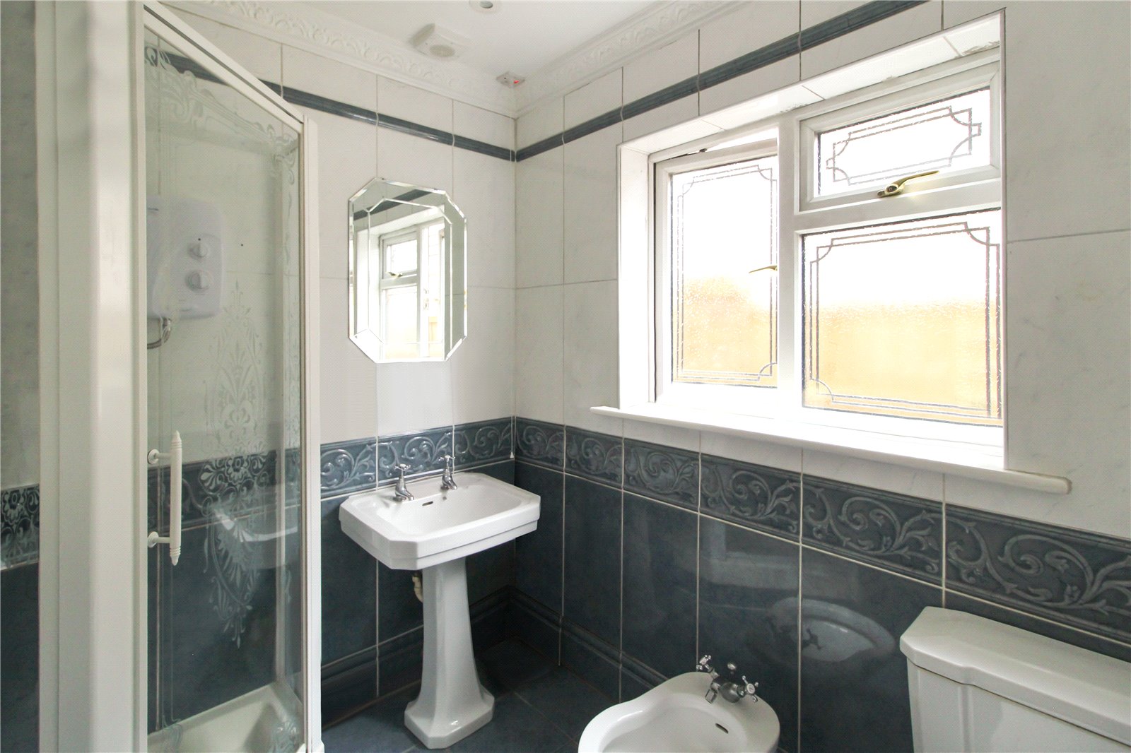 Four piece suite comprising, shower, sink, WC and bidet, double glazed window to side, tiled floor, tiled walls, smooth ceiling, ceiling light.