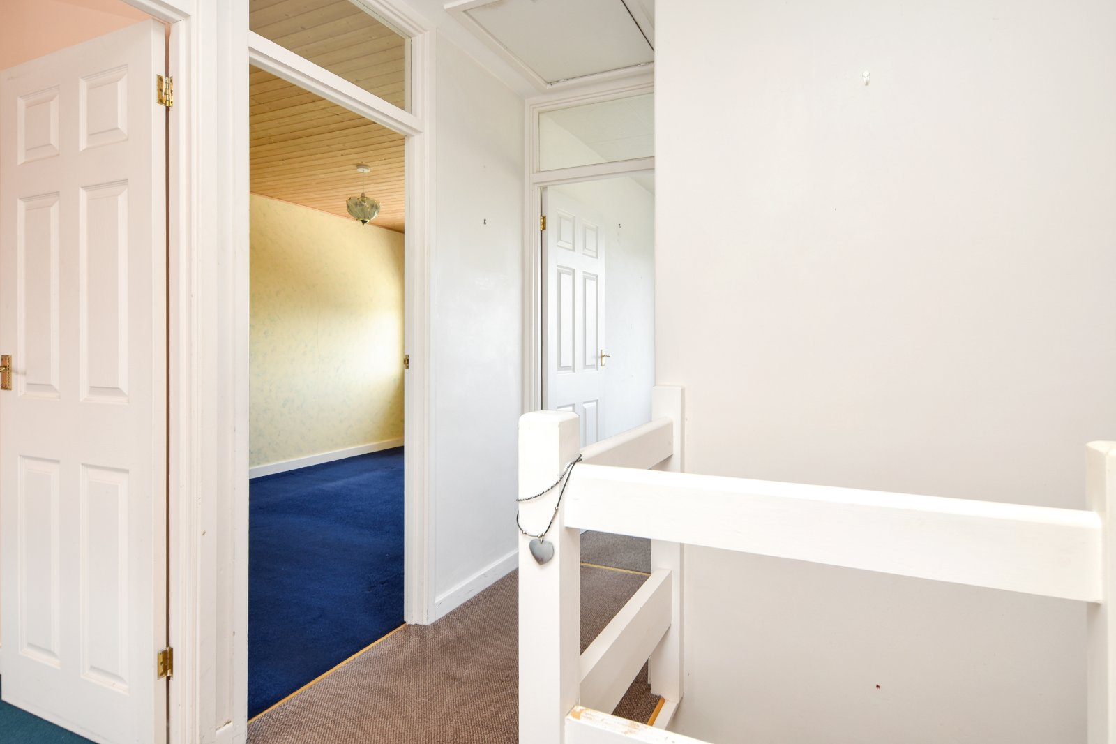 Doors to all first floor rooms. Door to airing cupboard housing water tank and linen shelving. Textured ceiling with access to loft space.