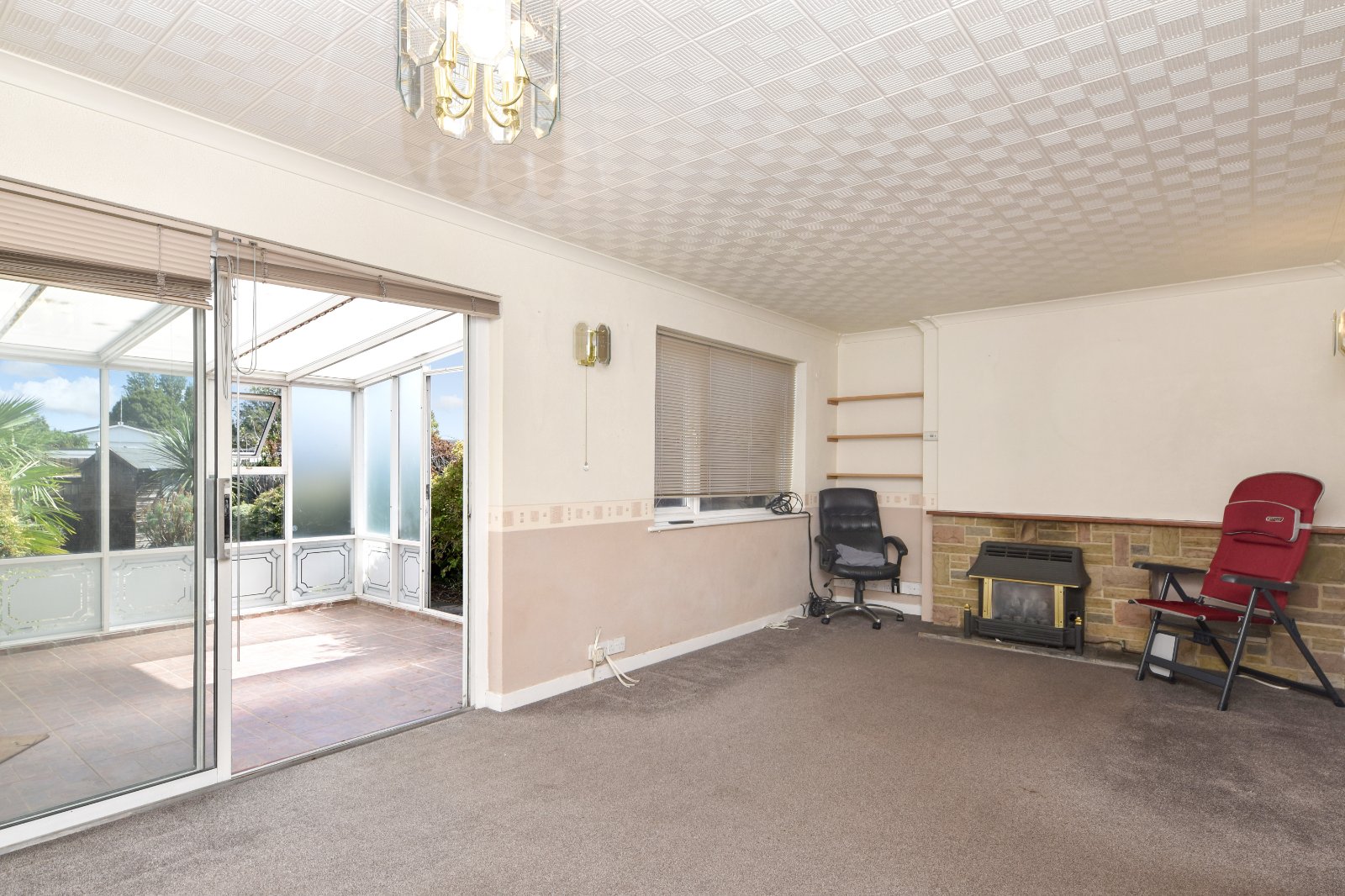 uPVC double glazed window to rear aspect. 'Yorkstone' style fireplace surround with mantle over extending to shelving plinth inset with recess niche with freestanding fire. Wall light points. Coved ceiling inset with ceiling tiles. Sliding double glazed door leads to;