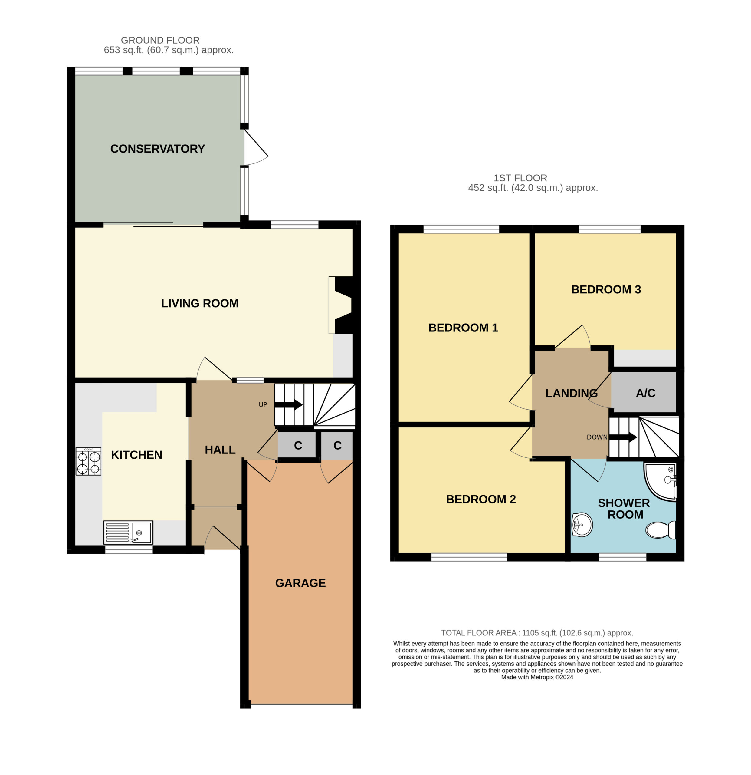 The rear garden is accessed through the conservatory and begins with a crazy-paved area, followed by a step leading to the rest of the garden, which is also paved in a similar style. The garden is bordered by established shrubs and plants. Timber framed shed to the rear (to remain). Fencing to boundaries.