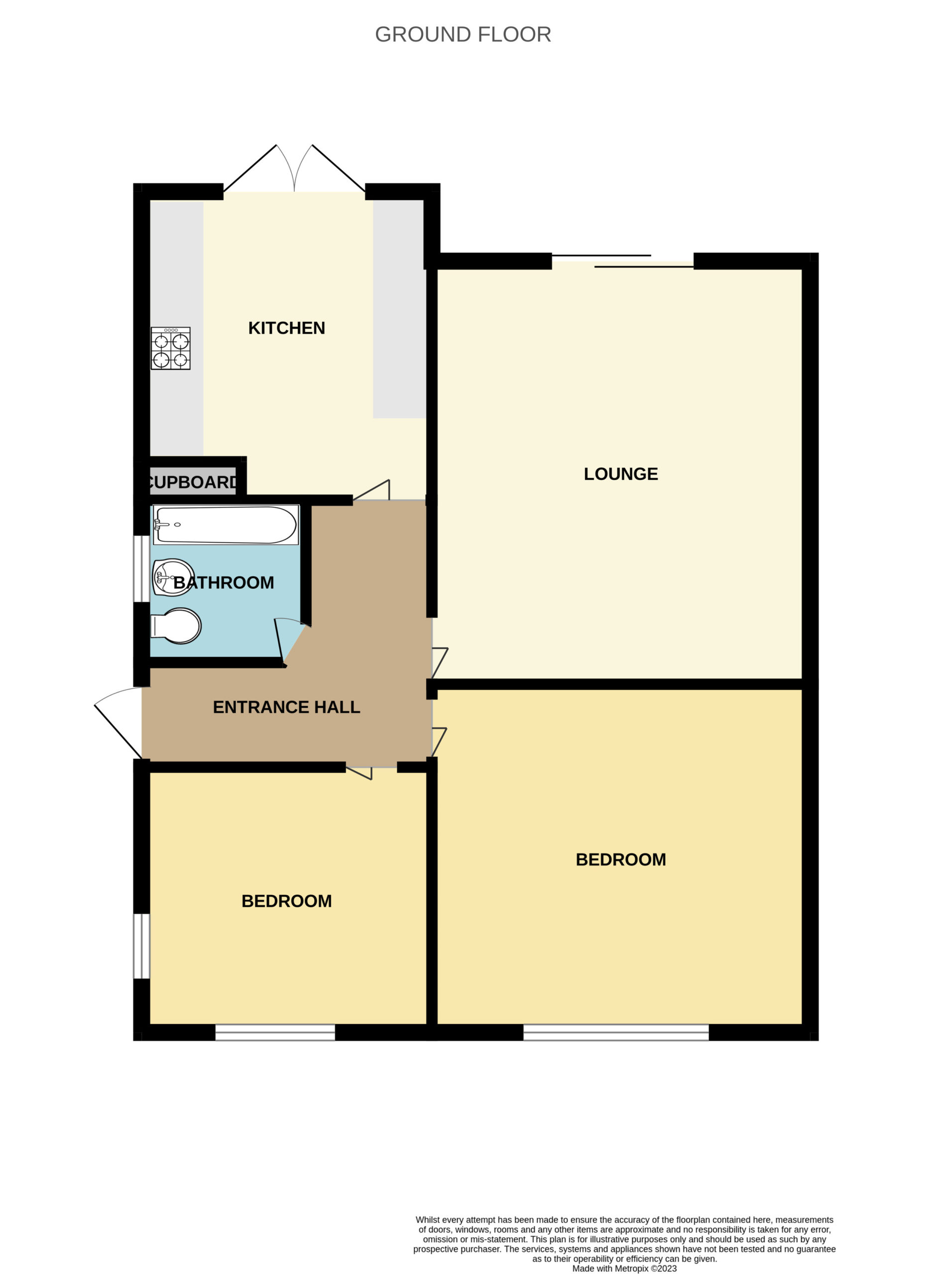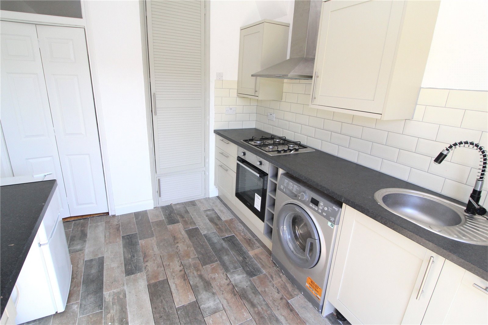 Fitted with single bowl stainless steel sink unit with mixer tap. Roll edge work surface with base cupboards and drawers under, eye level cabinets above. Built-in four ring gas hob with oven below and stainless steel extractor hood over. Built-in louvre fronted cupboard also housing hot water cylinder. Double glazed french doors to rear giving access to garden. Tiling to working surface areas. Smooth plastered walls and ceiling.