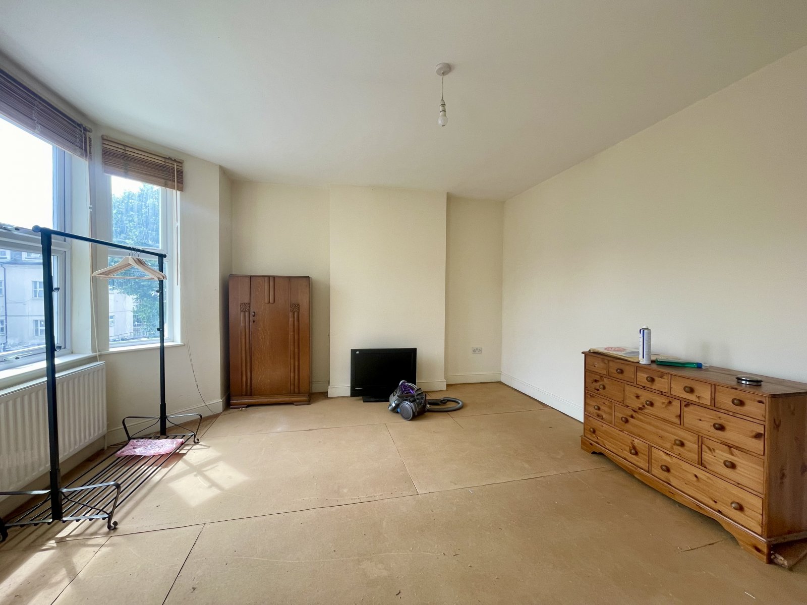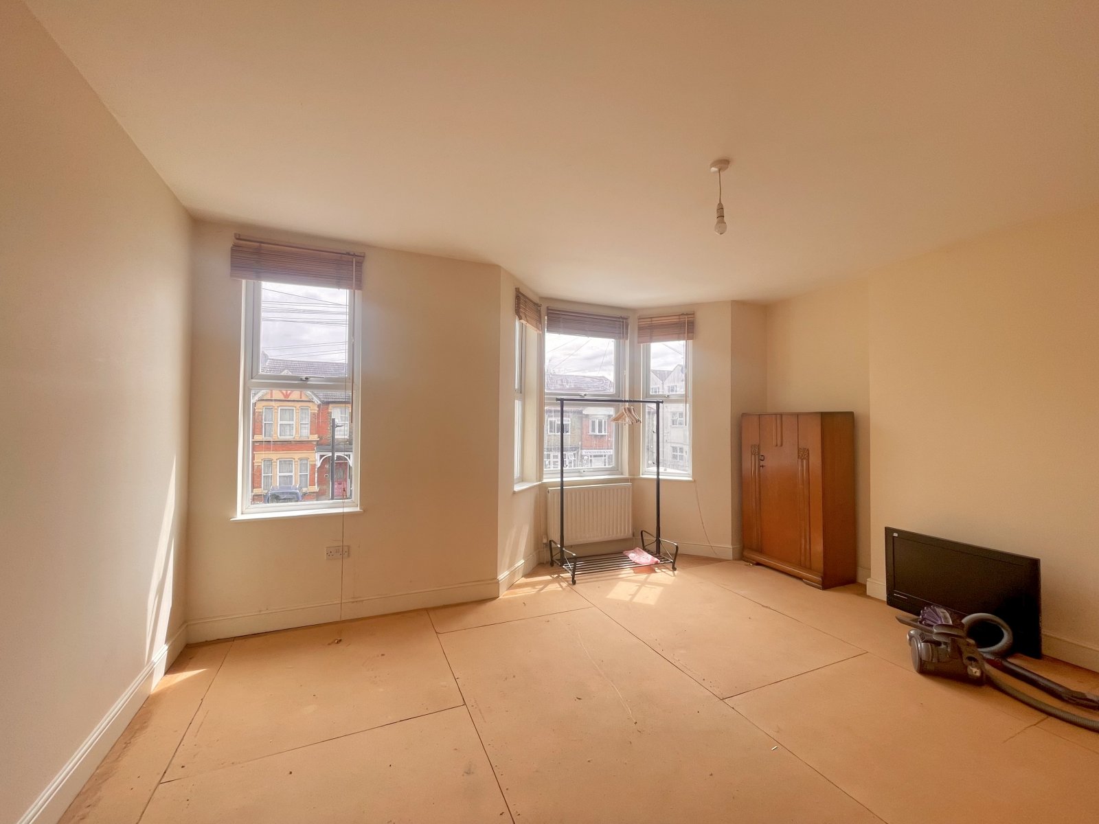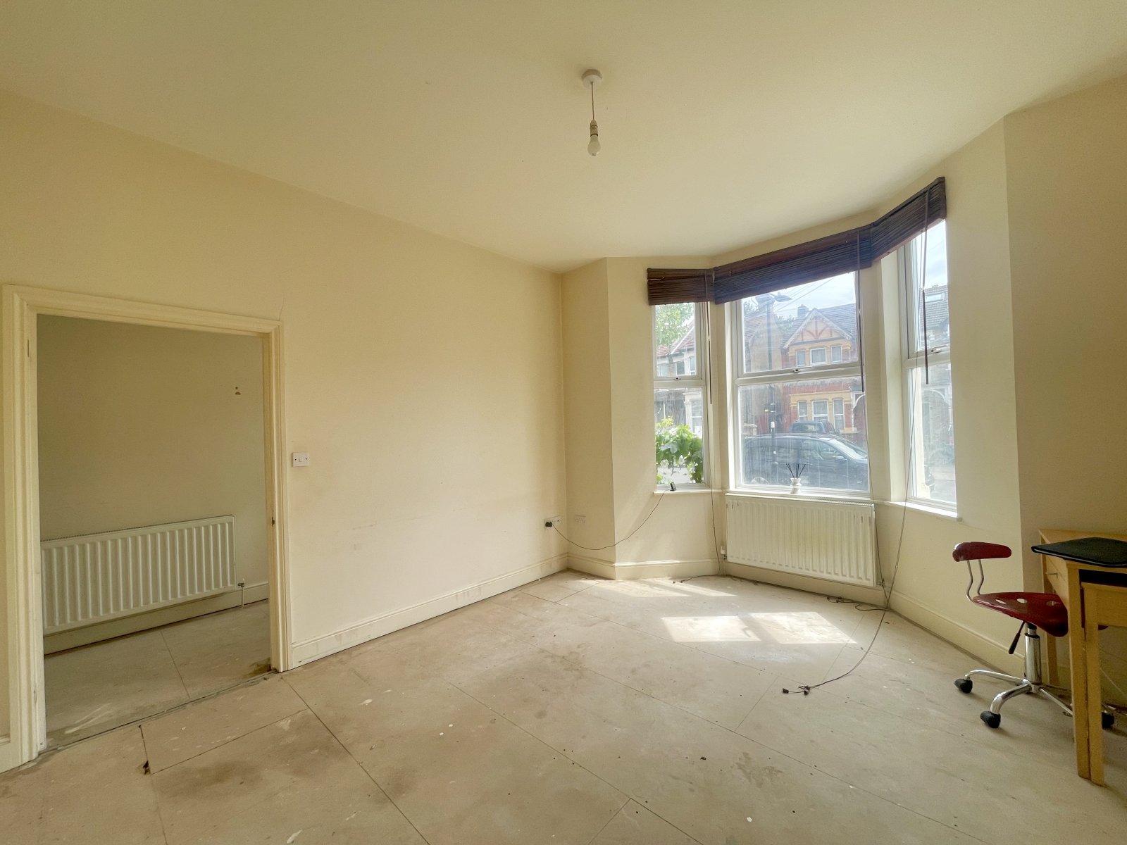 UPVC double glazed bay window to front. Two wall mounted radiators. High level skirting. Smooth plastered ceilings.