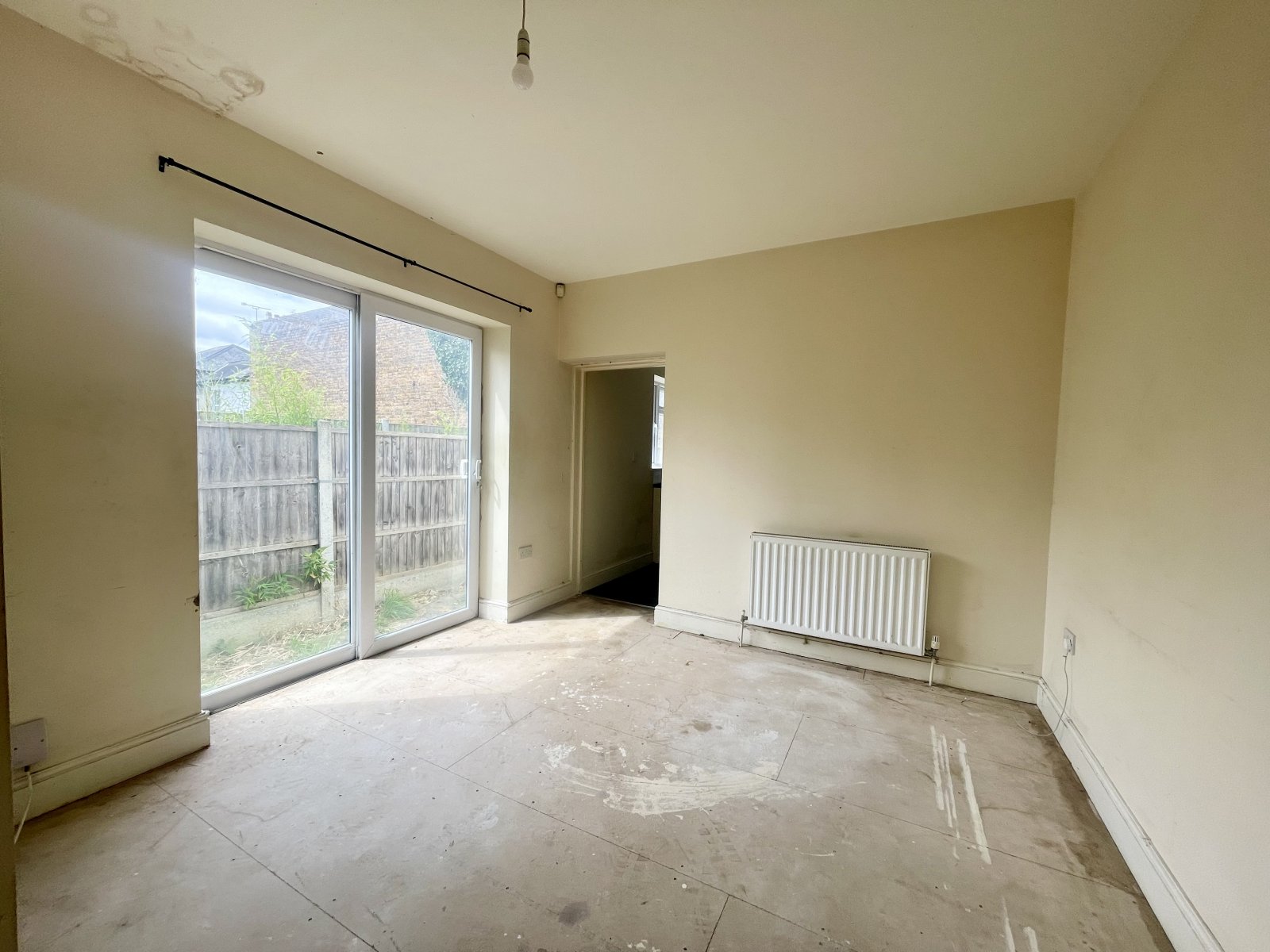 UPVC sliding patio door to side provides access to rear garden. Wall mounted radiator. High level skirting. Smooth plastered ceilings. Open archway to rear provides access to the: