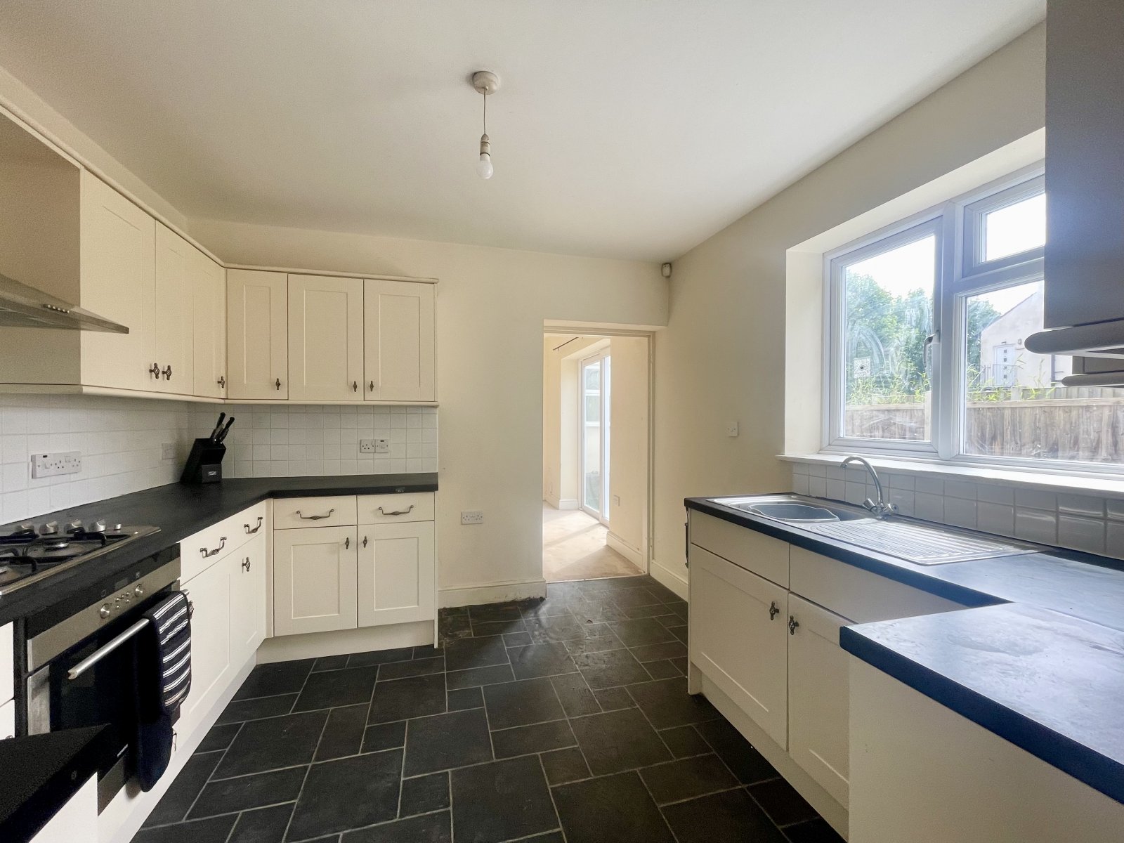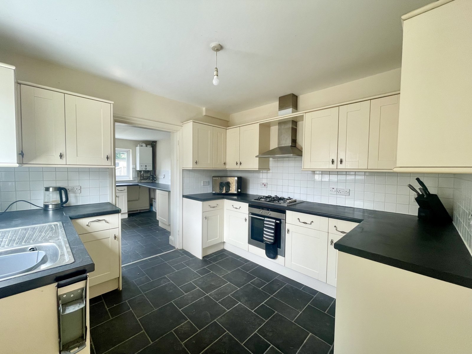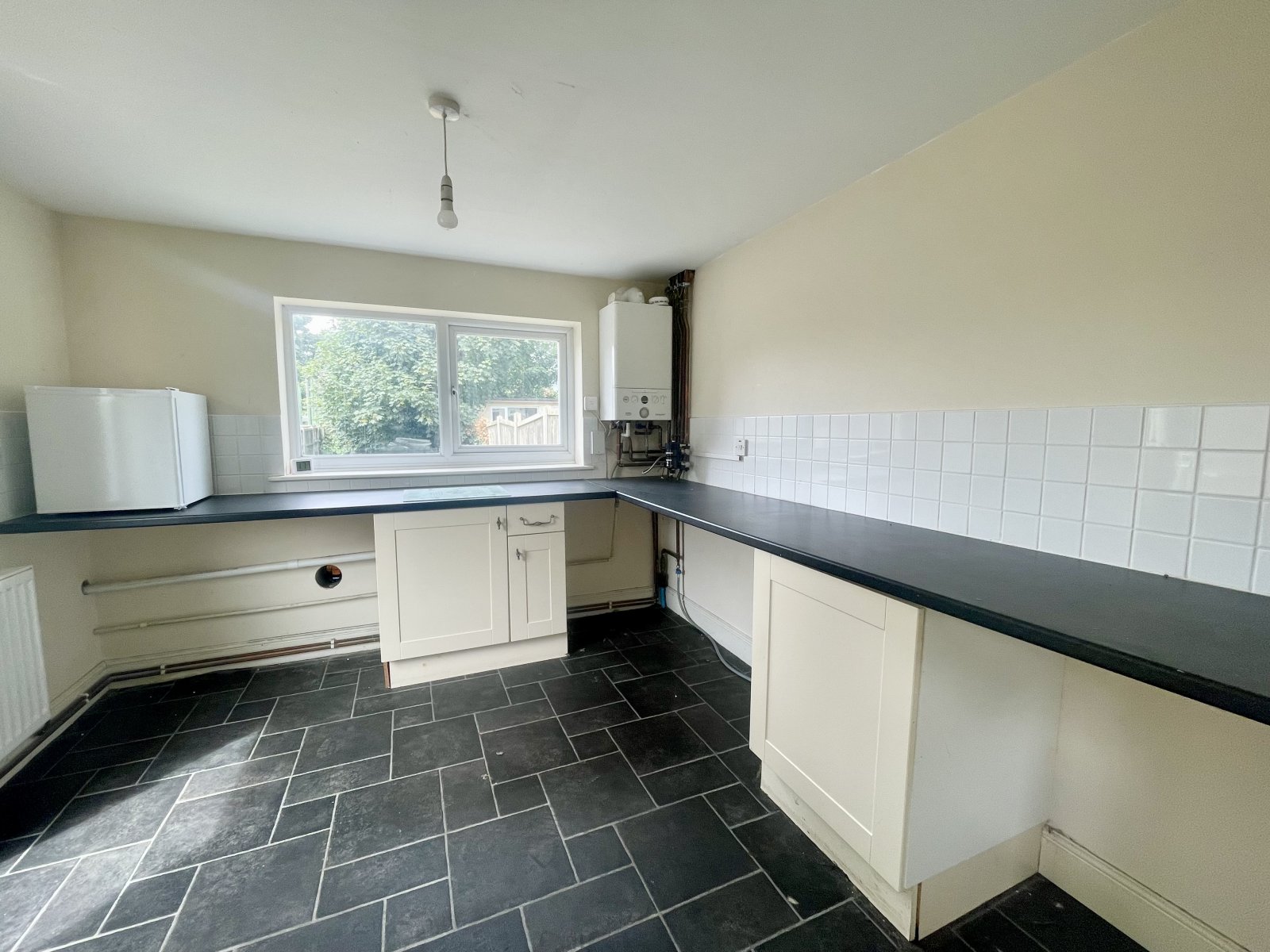 UPVC double glazed window to rear overlooking rear garden. Double glazed window to side. Fitted with a range of base level cabinets incorporating a rolled edge working surface. Wall mounted radiator. Fully tiled splash backs. Space and plumbing for washing machine. Space for under counter fridge and freezer. Ideal combination gas fired boiler. Tiled effect vinyl flooring. Smooth plastered ceilings.