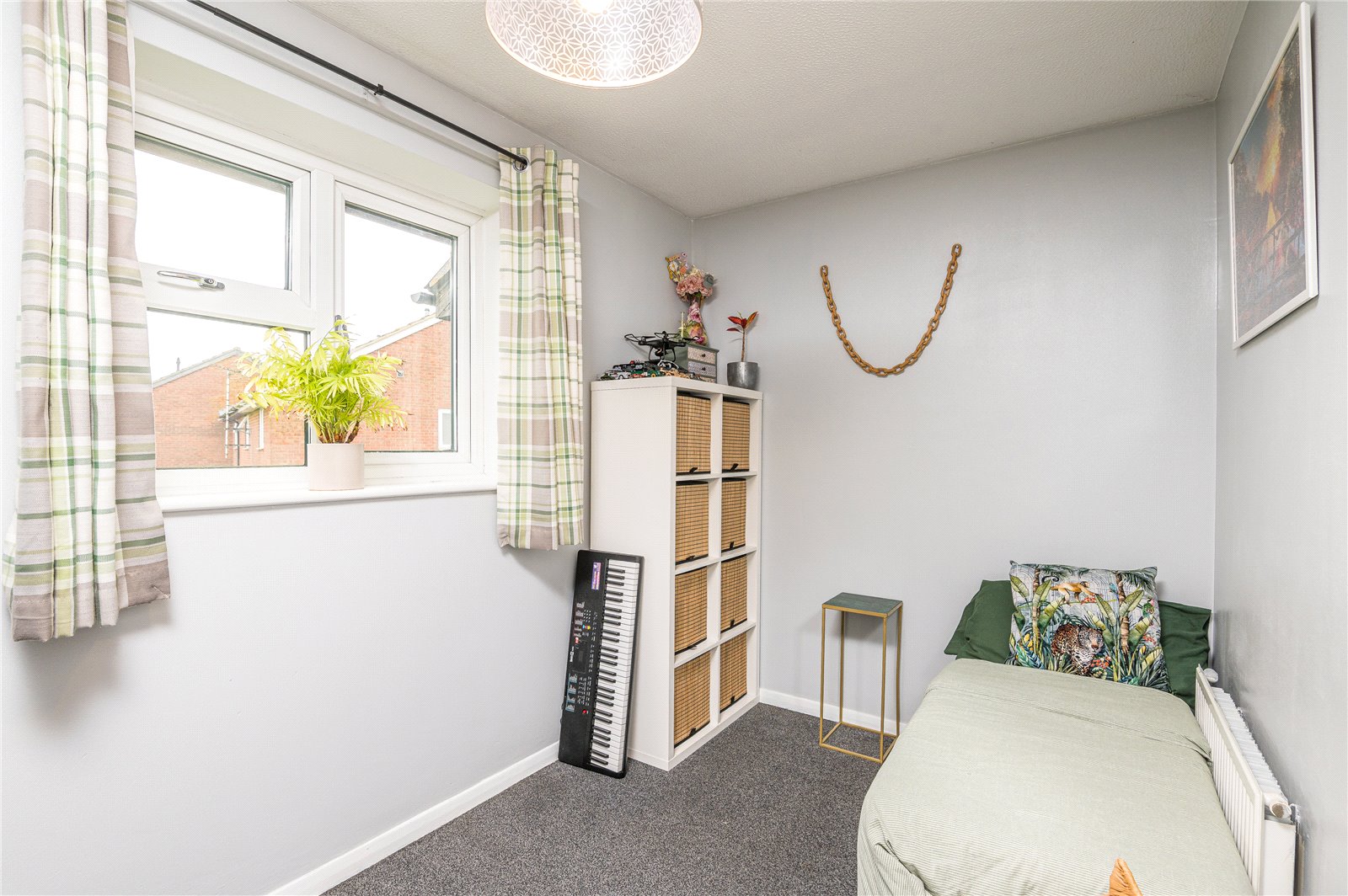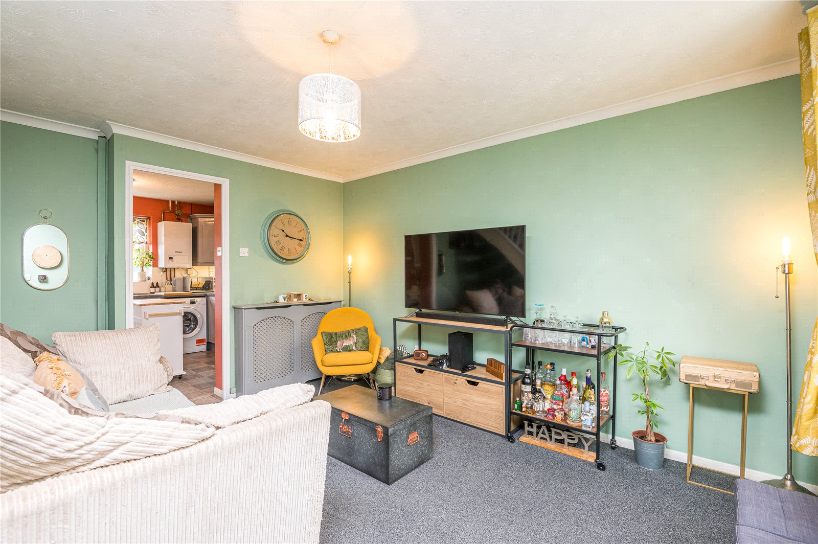 A shingle front garden with hardstanding for storage shed and footpath to the storm porch. Immediately to the fore of the property is the allocated private parking space. There is additional guest parking nearby.