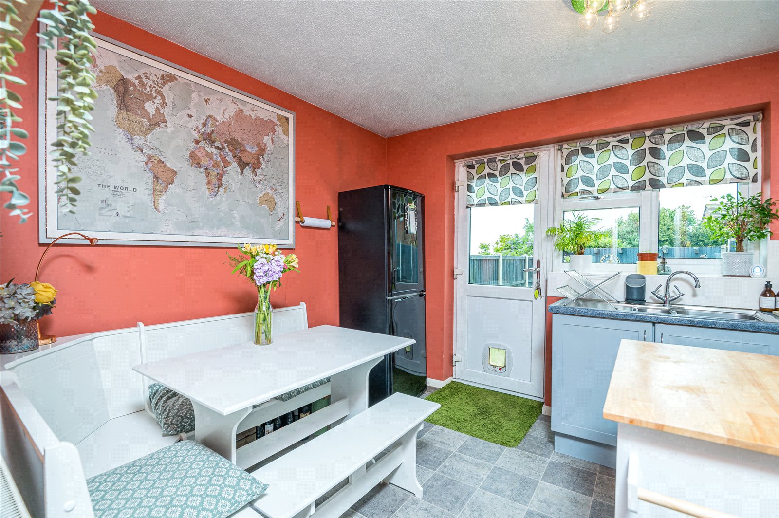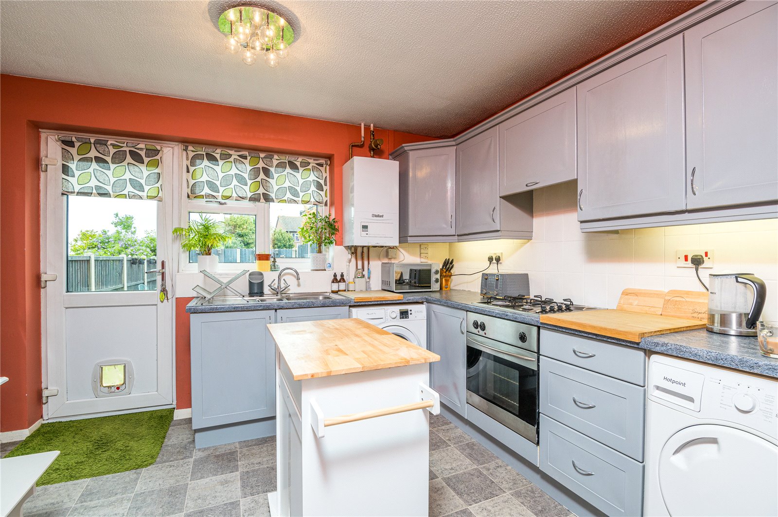 UPVC double-glazed door gives access to the rear garden, and UPVC double-glazed window overlooks the rear garden with views towards open farmland. The kitchen has been fitted with a comprehensive range of base and pelmeted eye level cabinets with granite effect working surfaces and inset one-and-a-quarter bowl stainless steel sink unit with designer mixer tap. Space, plumbing and drainage for automatic washing machine and further appliance space. Built-in fan-assisted electric oven in brushed steel with four-ring gas hob and concealed extractor canopy above. Ceramic tiled splashbacks to all working surface areas. Space for upright fridge/freezer. Radiator. Access to full-height larder cupboard. Recently installed 'Vaillant' gas combination boiler, serving domestic hot water and central heating system.