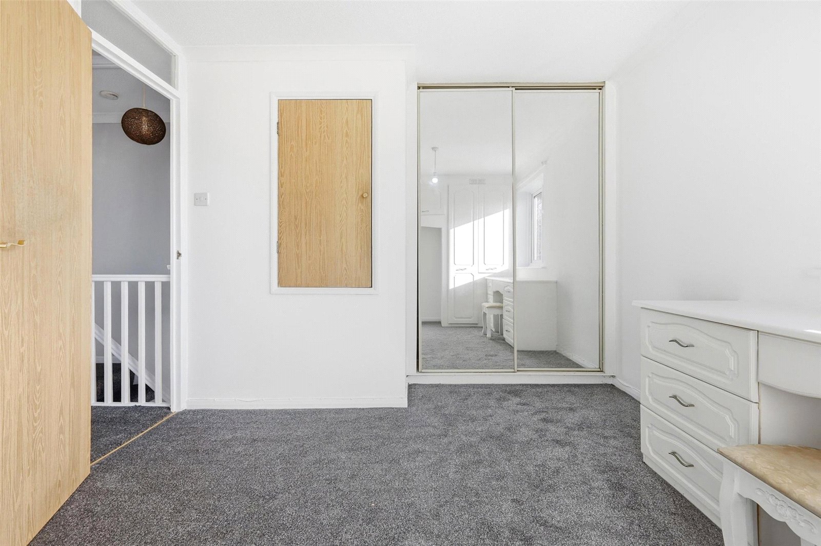 Double glazed window to front. Radiator. A range of built in wardrobes with overhead storage cabinets and dressing table. Further built in mirror front sliderobe wardrobe. Access to airing cupboard. Coved cornice to smooth plastered ceiling.