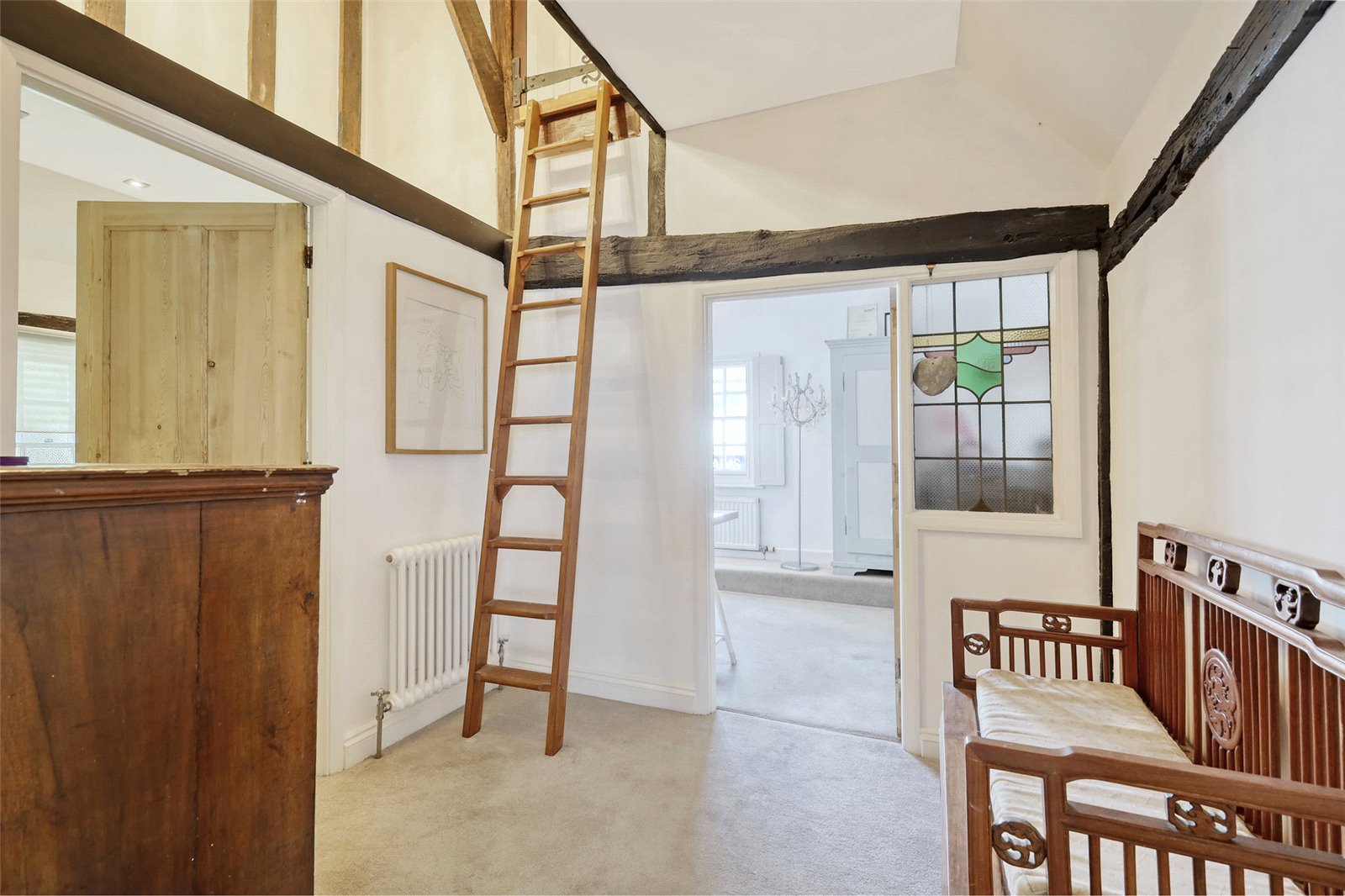 Double glazed window to rear. Feature exposed brickwork, studwork and beams, Old School style radiator, two wall light points, vaulted ceiling, access to linen cupboard. Two high level doors leading to two large boarded loft spaces. Suffolk latch doors lead off to principal first floor rooms: